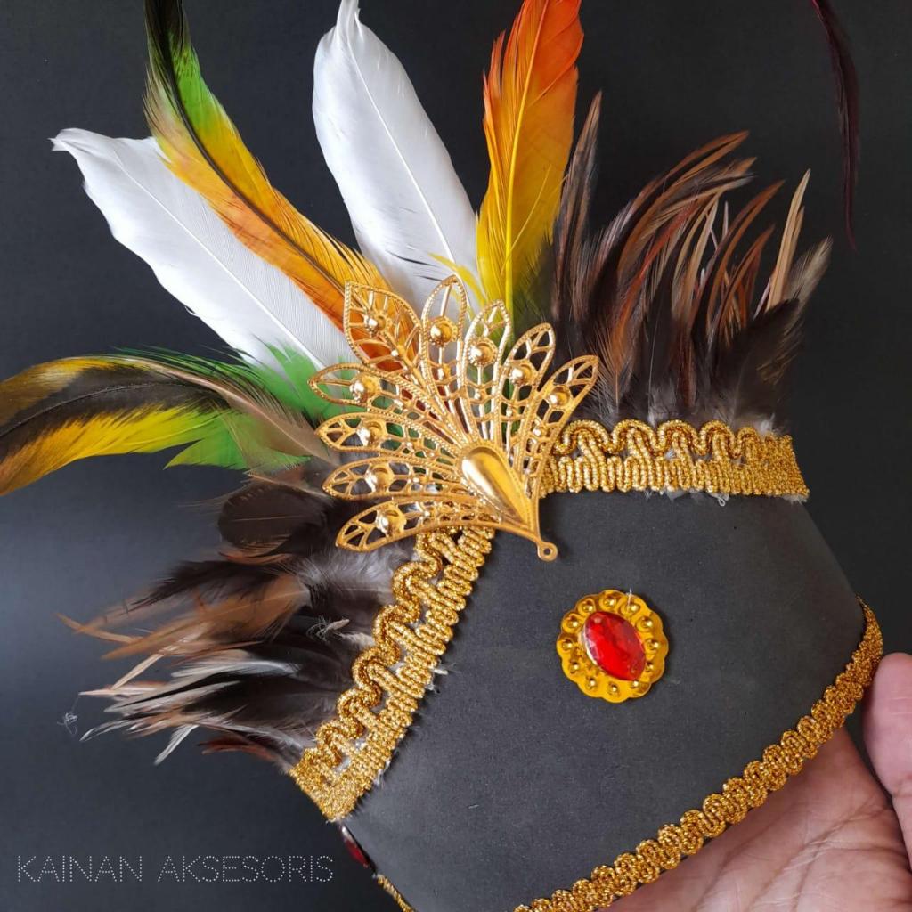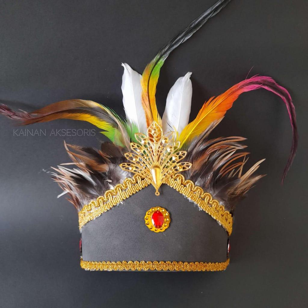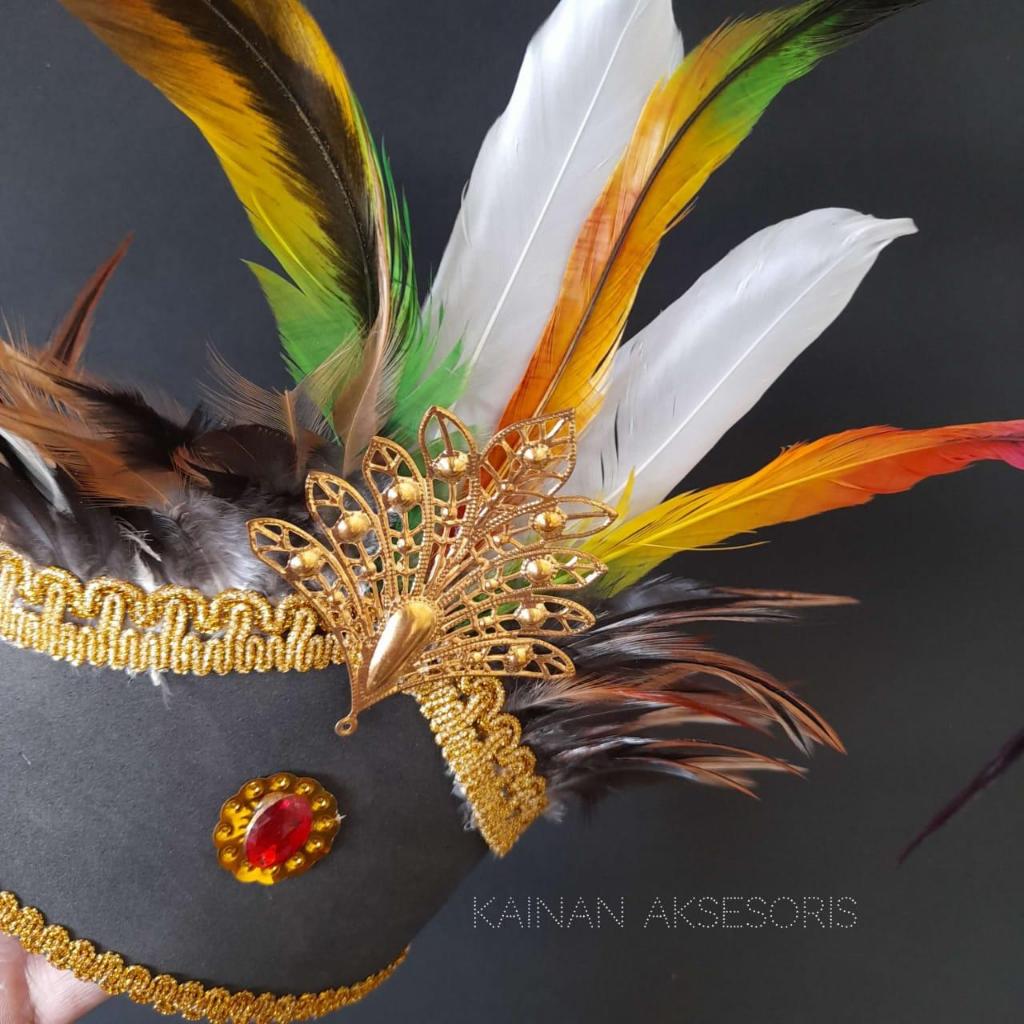TOPI BULU DAYAK HITAM KARNAVAL PENTAS UNTUK ANAK REMAJA DEWASA
