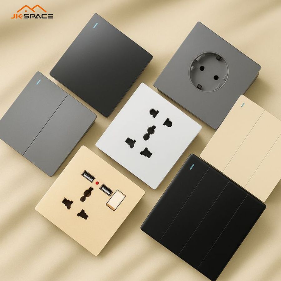 JK Space Saklar Stop Kontak Mewah Abu/Hitam/Putih/Gold Gang Estetik Tahan/Steker Serbaguna