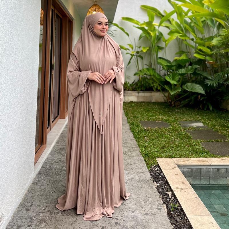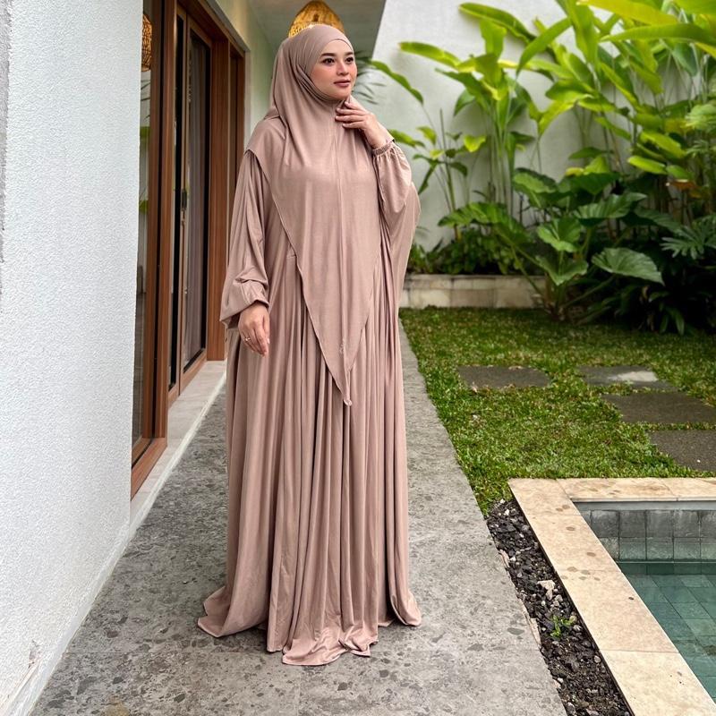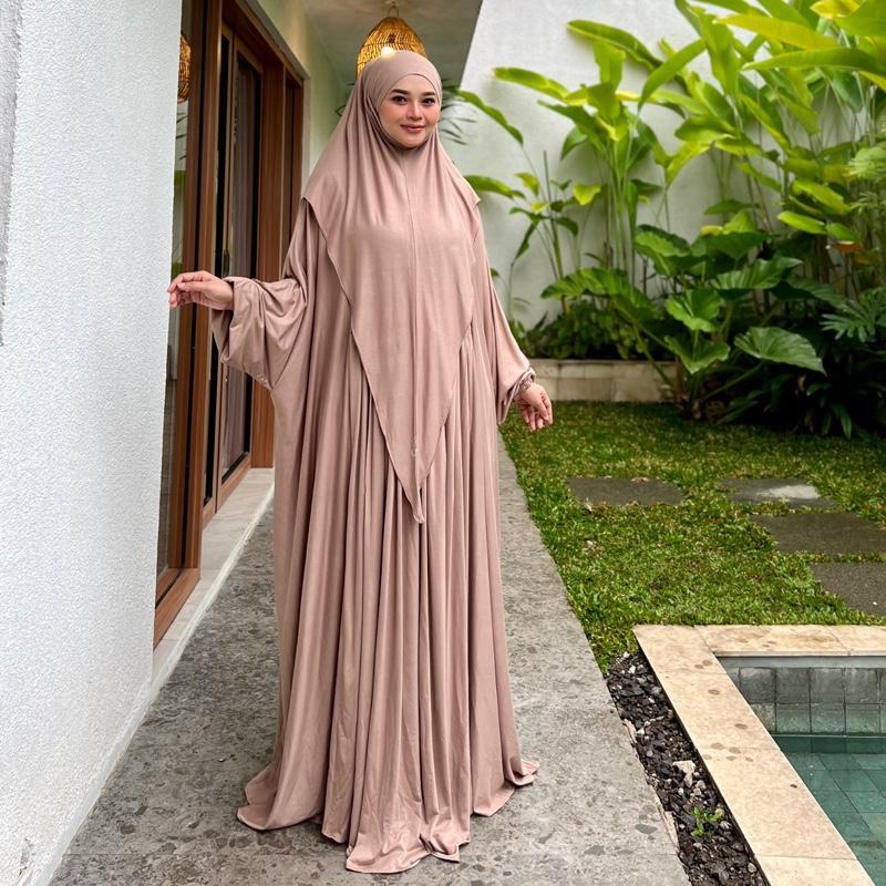 Nazella Set Abaya Spandek by Jesi Achmad Kaftan Gamis Dress Batwing Wanita Muslimah Simple Elegant untuk Daily dan Umroh