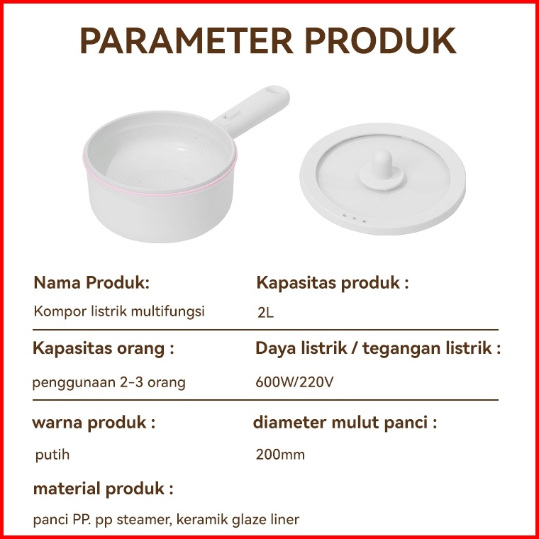 Panci Listrik Wajan Listrik Dua Dalam Satu Kompor Listrik Multifungsi 2l Kompor Listrik Kecilputih