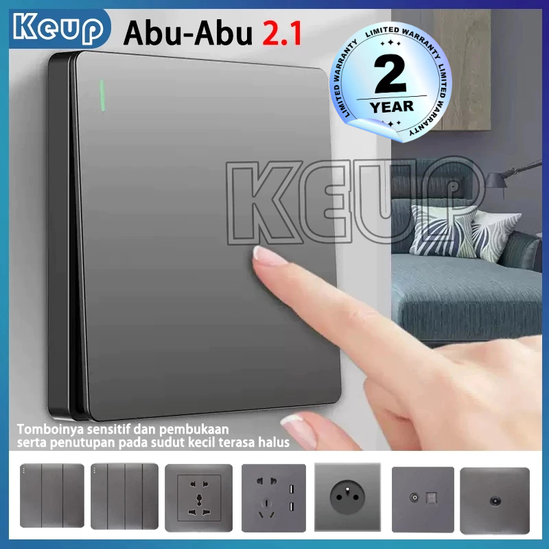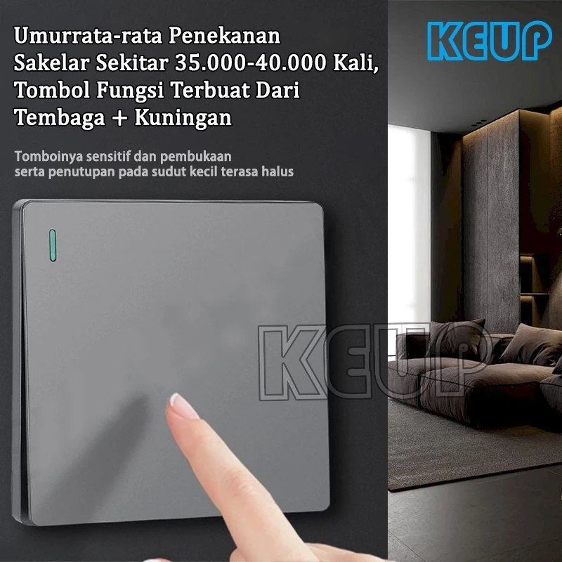 KEUP Saklar Lampu Push On Stop Kontak Saklar On Off Switch Sakelar Mewah Grey Soket Listrik