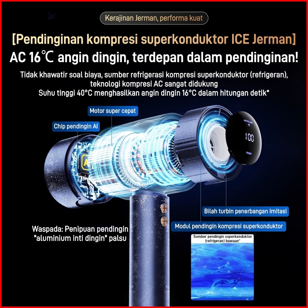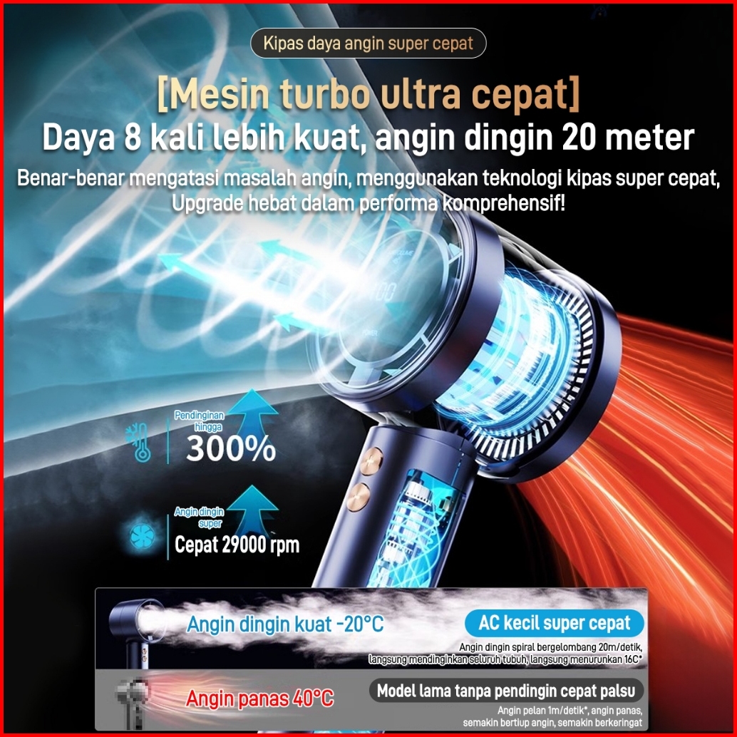 Dl Kipas Genggam Super Cepat Strong Wind 100 Gear Wind Speed Kipas Angin Digital Display Adjustable Turbo Kipas Tangan