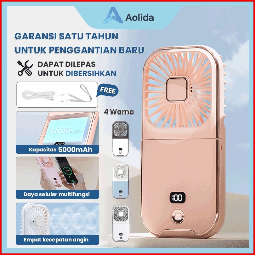 Aolida Kipas Angin Portable Mini Type-c Usb Led Menunjukkan Lipat Dudukan Ponsel Dan Powerbank 5000mah Baterai Tahan Lam