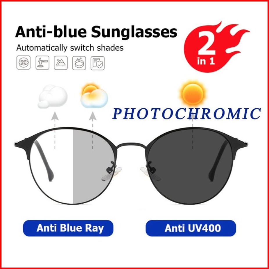 Kacamata Photocromic Korea Anti Radiasi 2 In 1 Photochromic Pria Wanita 1920