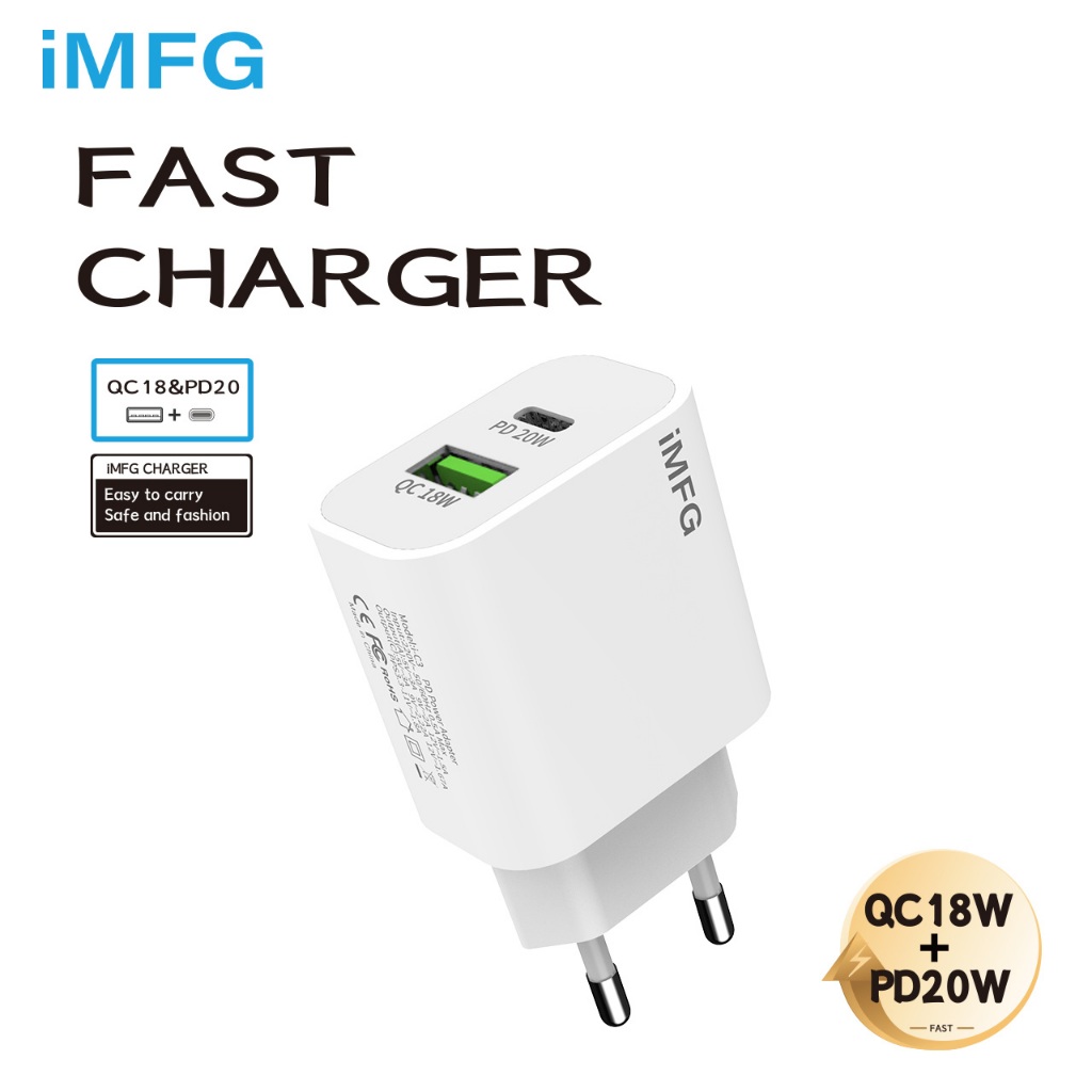 IMFG Charger QC18W PD20W Fast Charging USB & Type C Charger 2 Port USB Adaptor Quick Charger Adaptor
