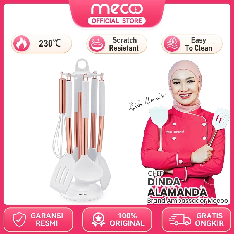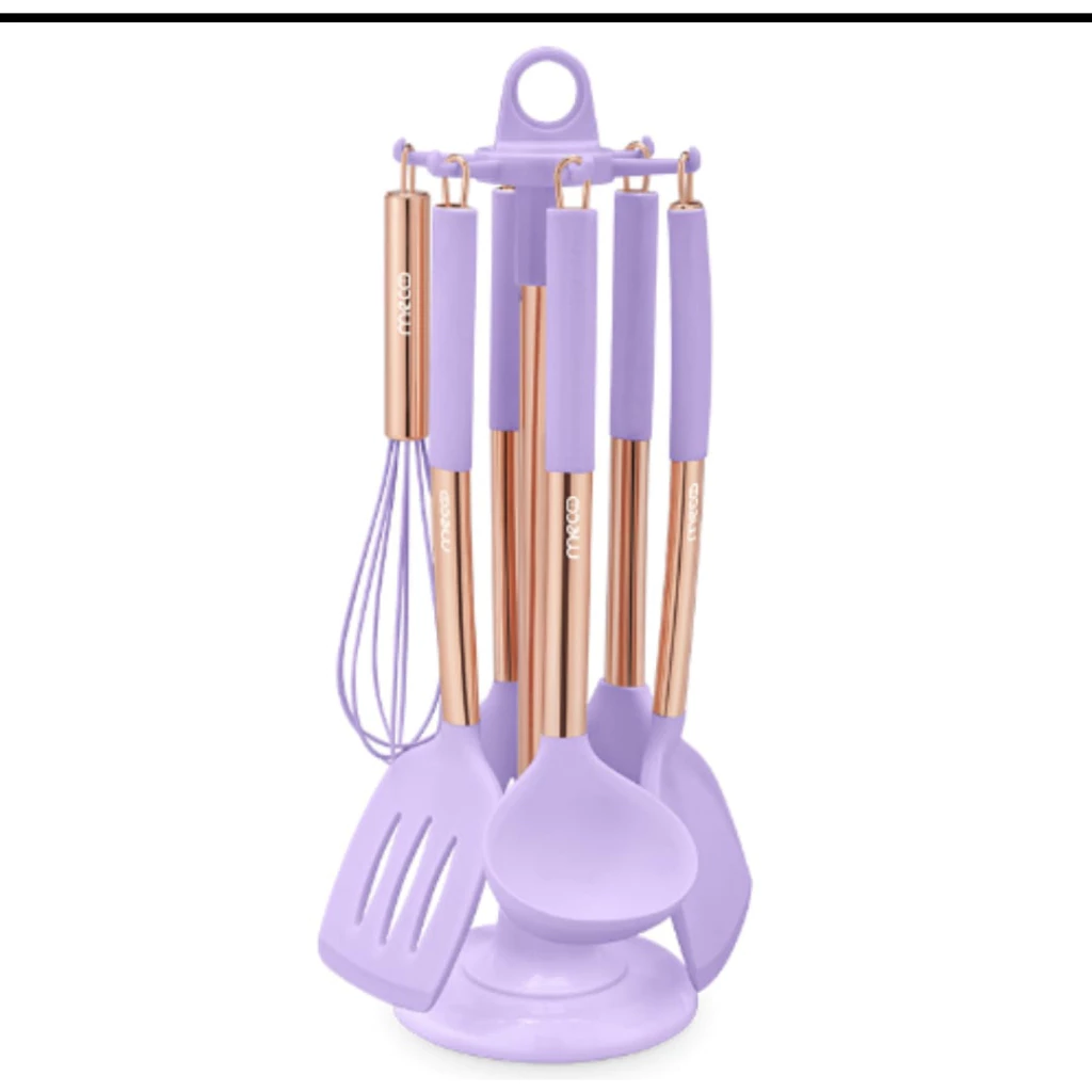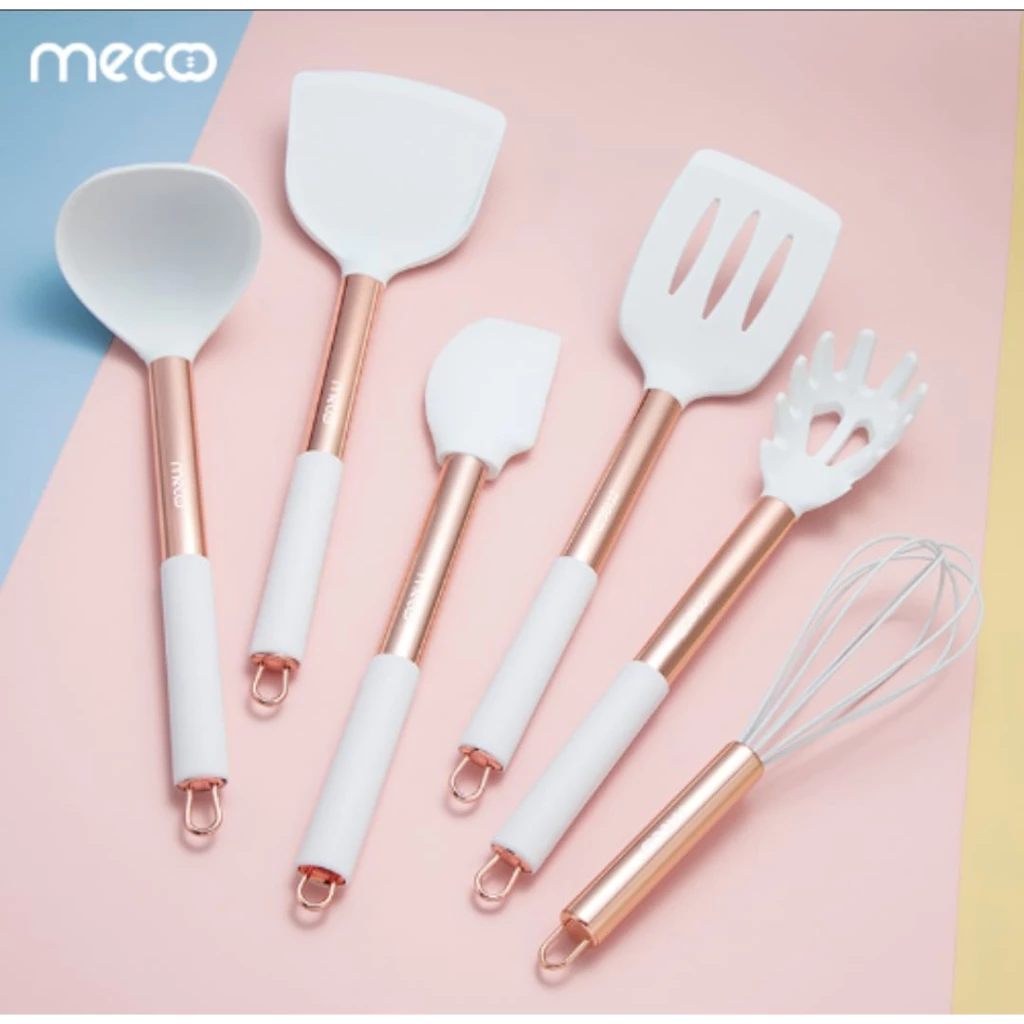 Mecoo - Most Aesthetic 6 in 1 Antibacterial Odorless Spatula Set With Storage Rack 7 Pcs Premium Silicone FDA SGS Approv