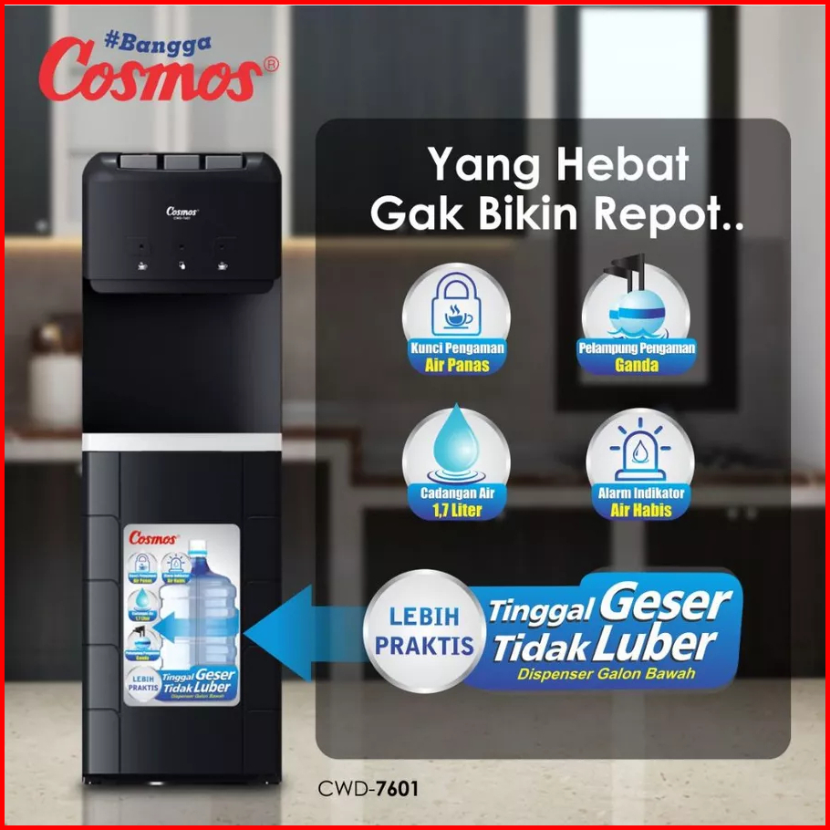 Ready Cosmos Dispenser Galon Bawah Cwd 7601 Cwd7601 Cwd-7601 Cold Normal And Hot Garansi Resmi