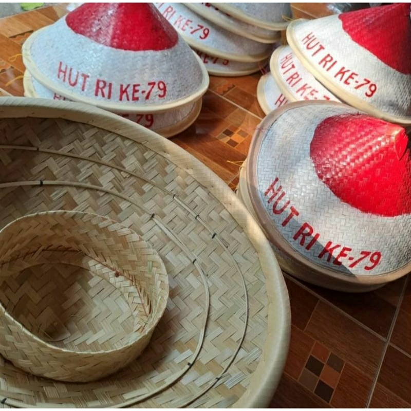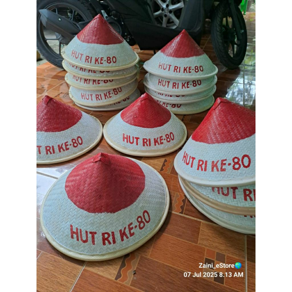 Caping Topi Petani dicat Warna MERAH PUTIH untuk HUT RI, Karnaval Agustusan, size anak dan dewasa