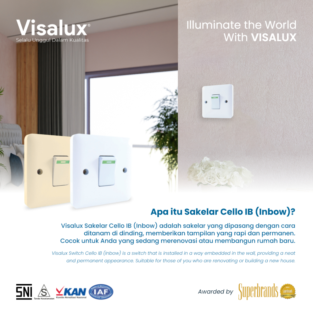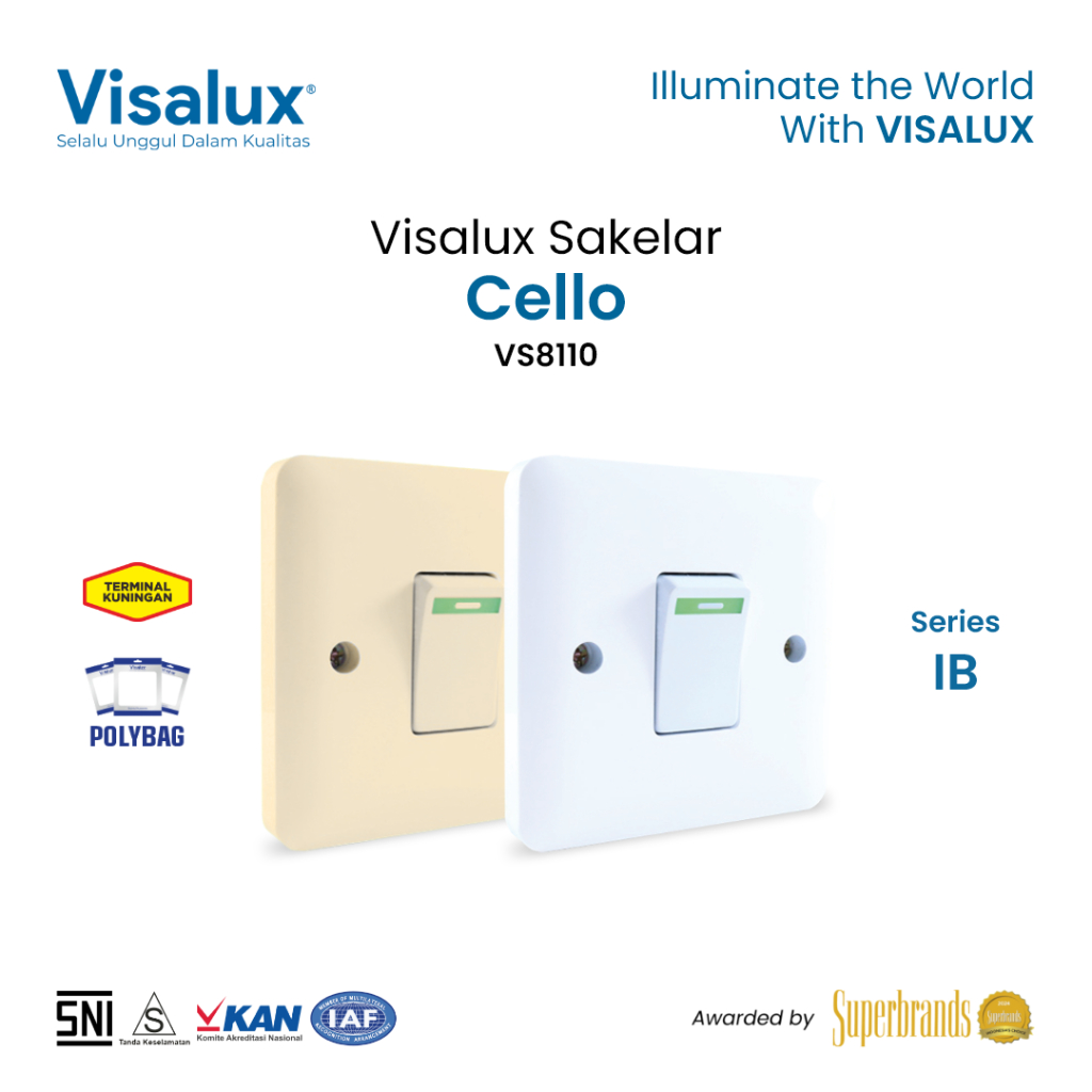 Visalux Saklar Engkel Cello Inbow Warna Putih / Cream - 1G / Sakelar Premium (VS8110)