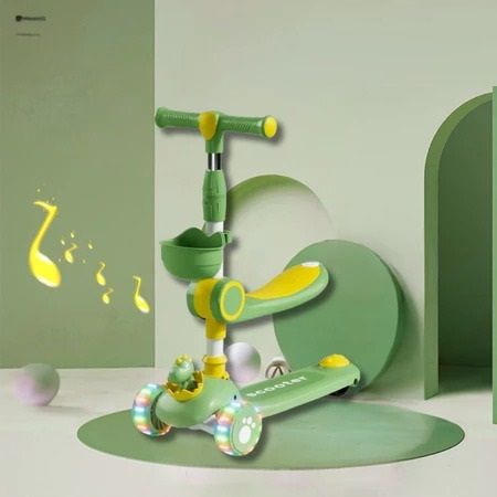 Scooter Mainan Anak Bulat 2 in 1 / Skuter Lipat Duduk Roda Tiga Otoped Lampu Musik Rem Anak Toys