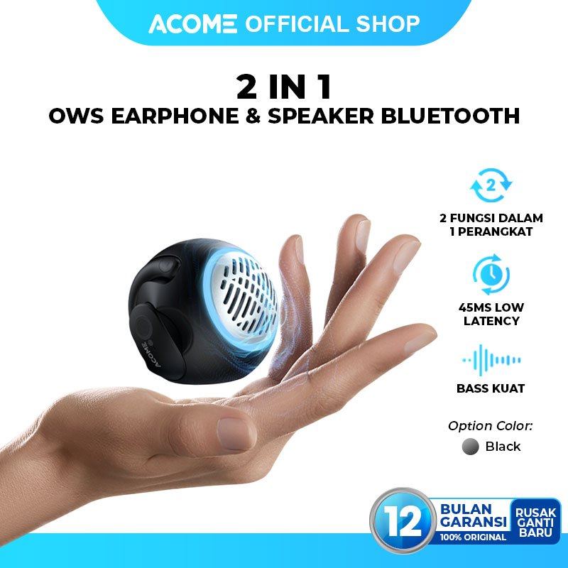 ACOME 2 in 1 Earphone and Speaker Bluetooth 5.4 Multifungsi Low Latency 45ms Stereo Super Bass A21 Original