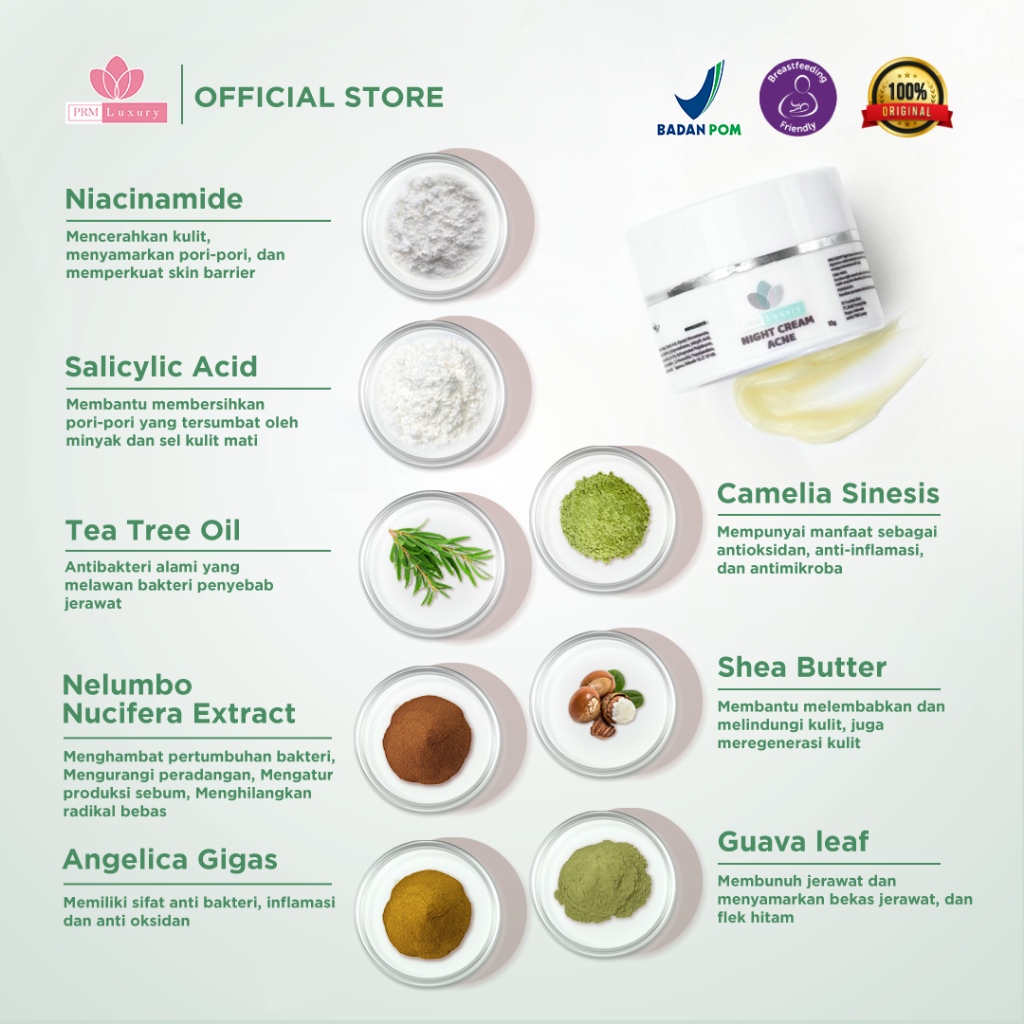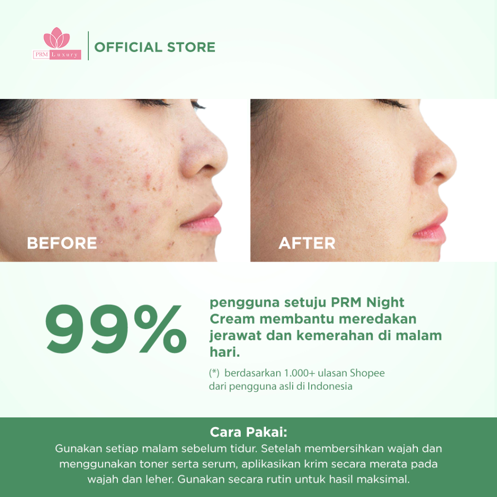 NIGHT CREAM ACNE PRM LUXURY OBAT JERAWAT MALAM HARI KRIM MALAM MENGURANGI BRUNTUSAN & MERAH