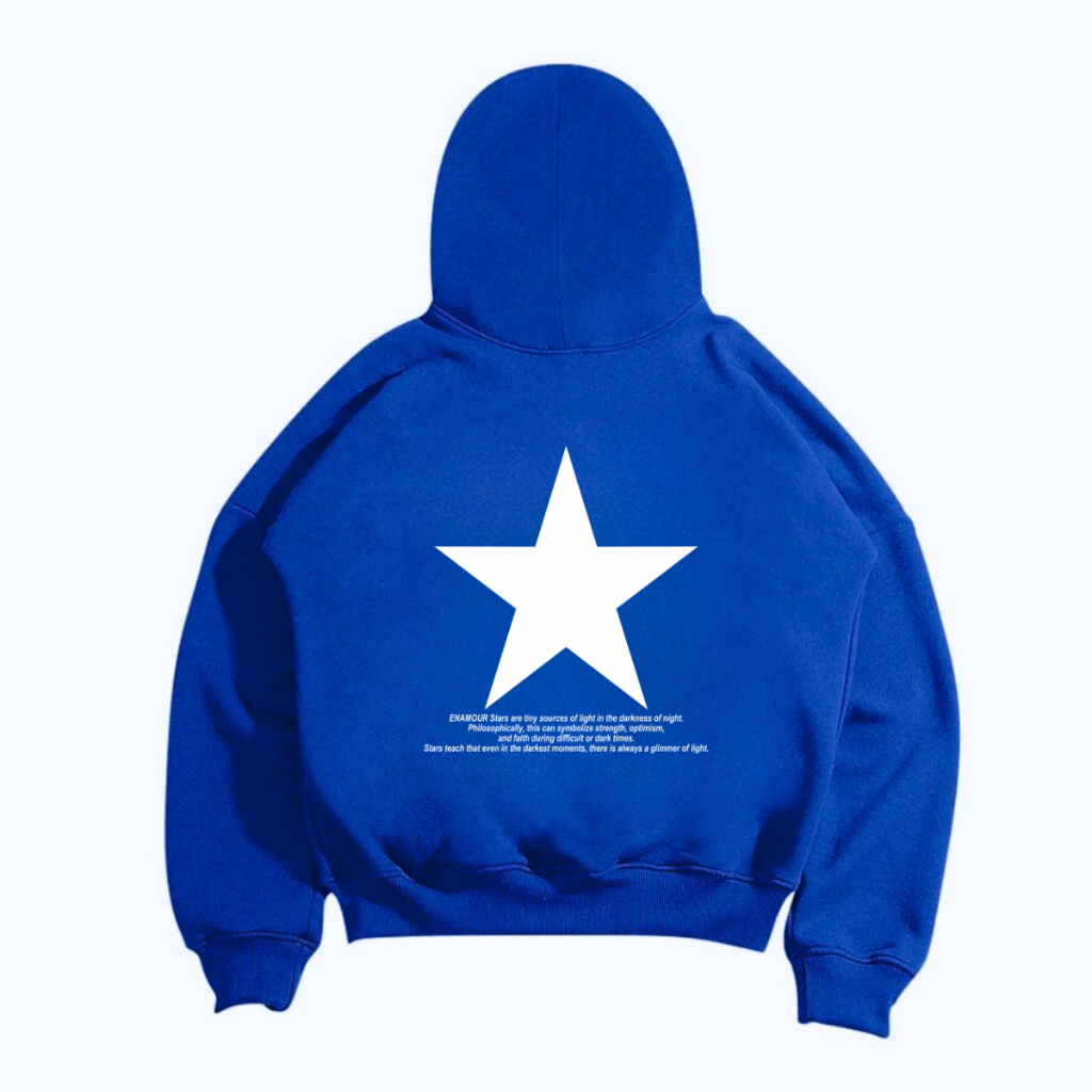 Hoodie Boxy Oversize Starboy Outfit Cowok Cewek Keren Fleece 280 Gsm Tebal Biru Distro Pria