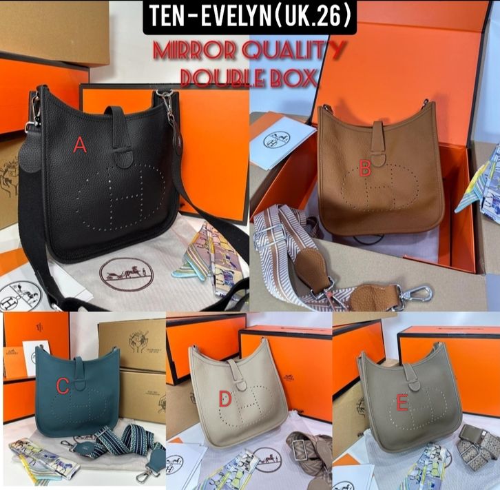 TAS WANITA HERMES EVELYN KULIT ASLI MIRROR VVIP/TAS EVELYN 26CM/TAS SELWMPANG BRANDED TERBARU