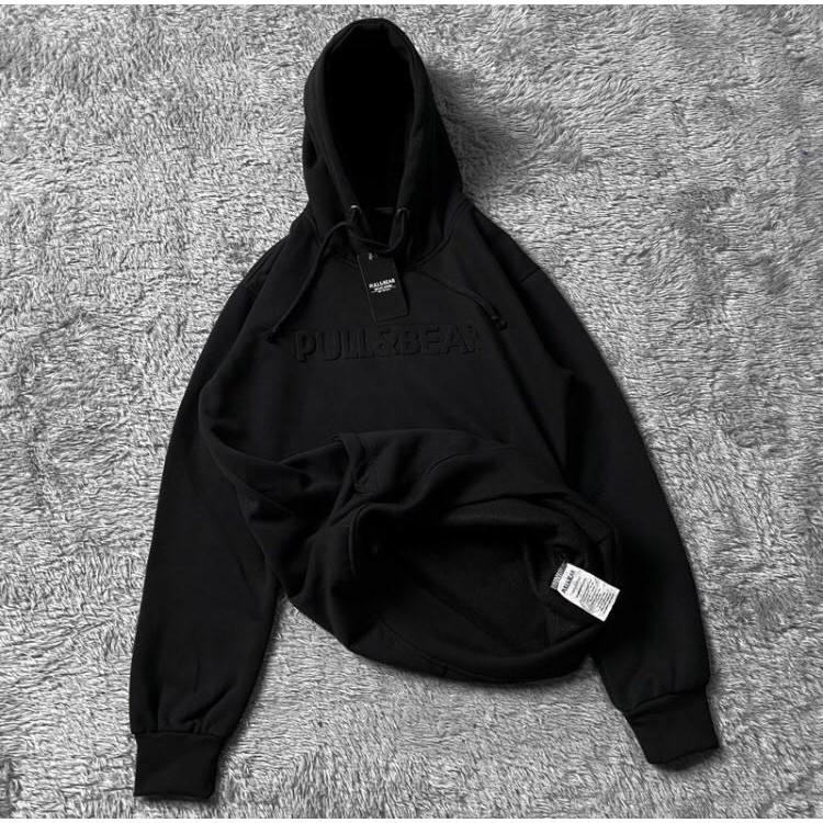 FREE PAPER BAG Hoodie Sweater Pull & Bear Emboss 3D Font Timbul Full Lebel dan Hantag Termurah