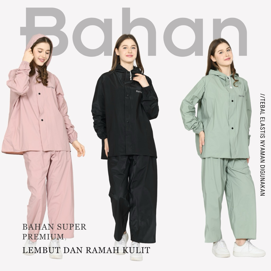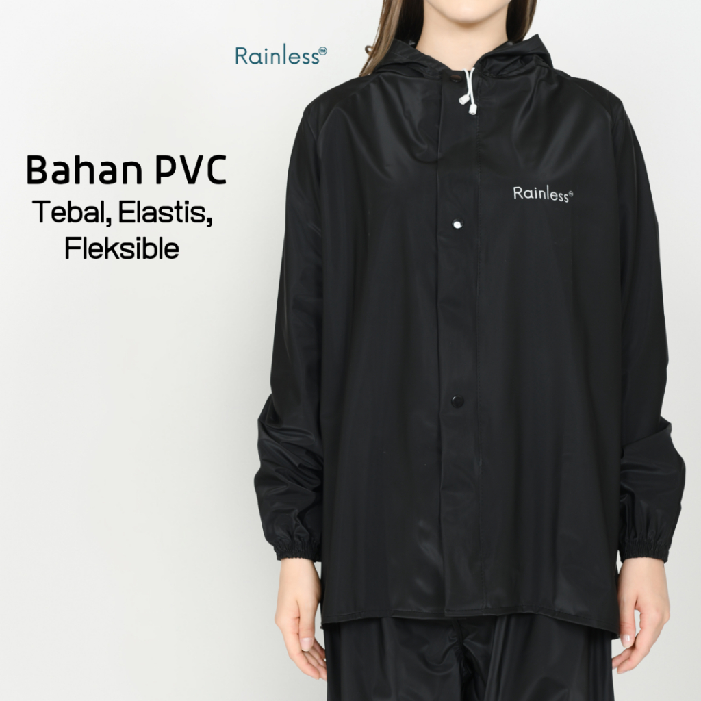Rainless Jas Hujan Stelan Jaket Celana Bahan Pvc Premium Pria dan Wanita Dewasa