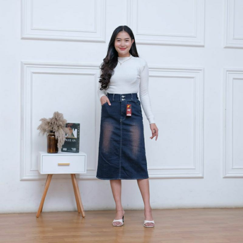 Rok jeans span ori 7/8 wanita street slim denim tebal nyaman