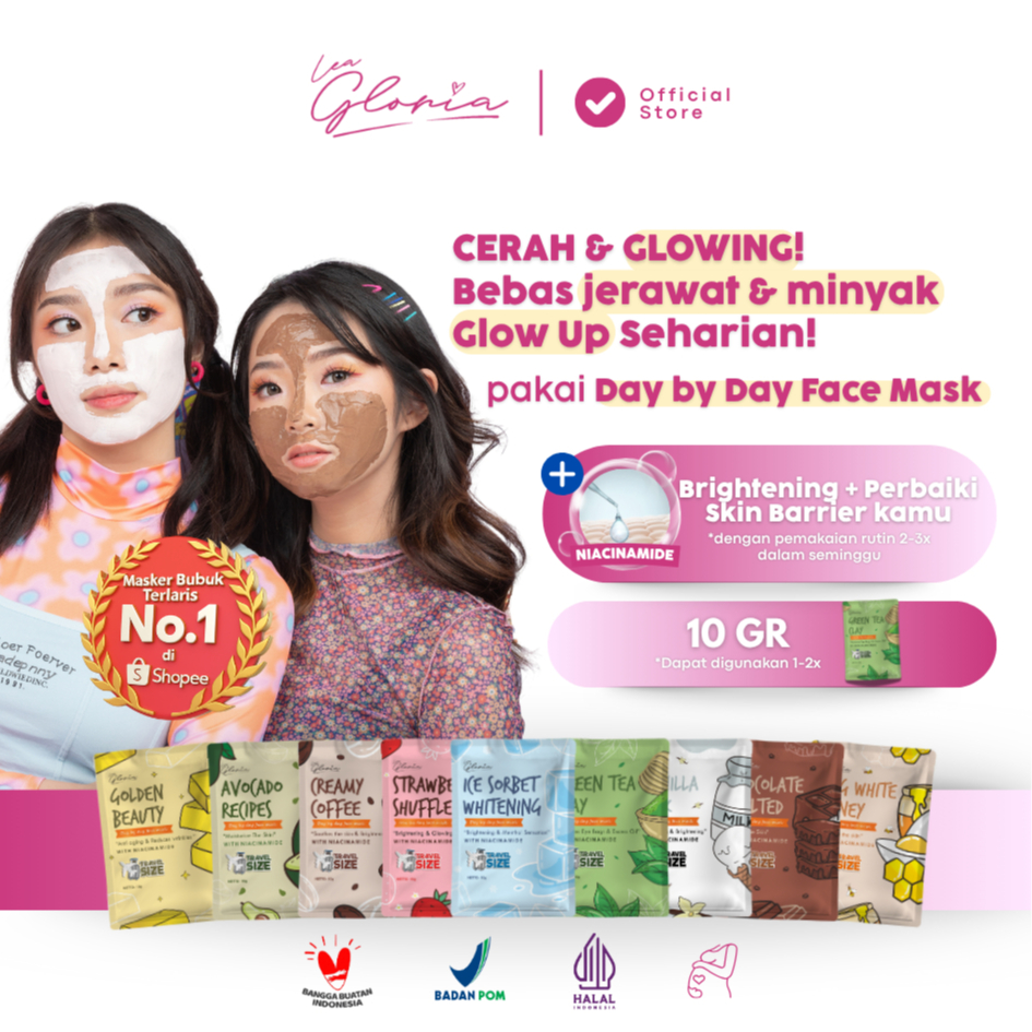 Lea Gloria - Day by Day Face Mask - Masker Bubuk - Masker Viral Travel Size 10 GR - Mencerahkan Melembabkan