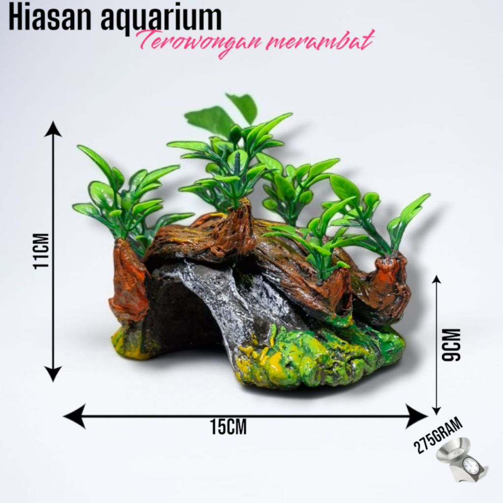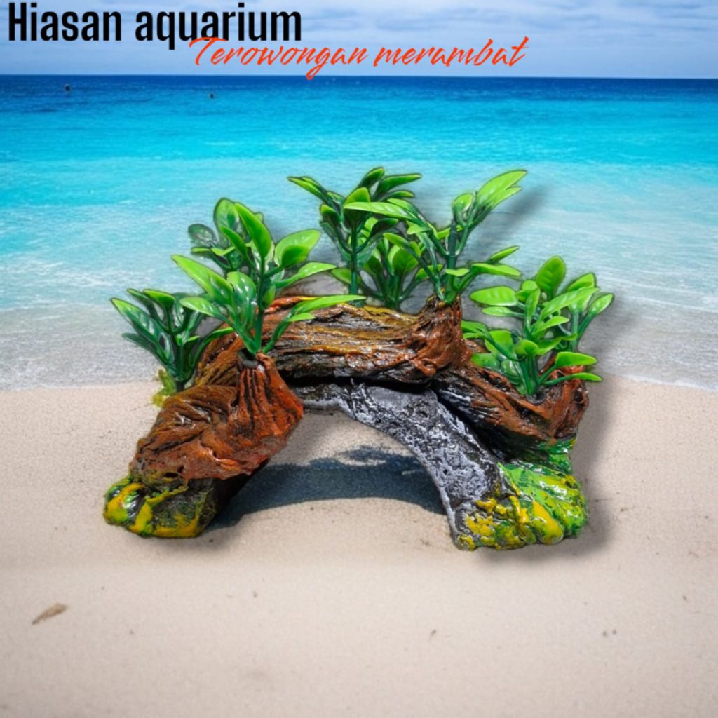 Dekorasi Ornamen Hiasan Aquarium Aquascape Terowongan Bonsai Menjalar
