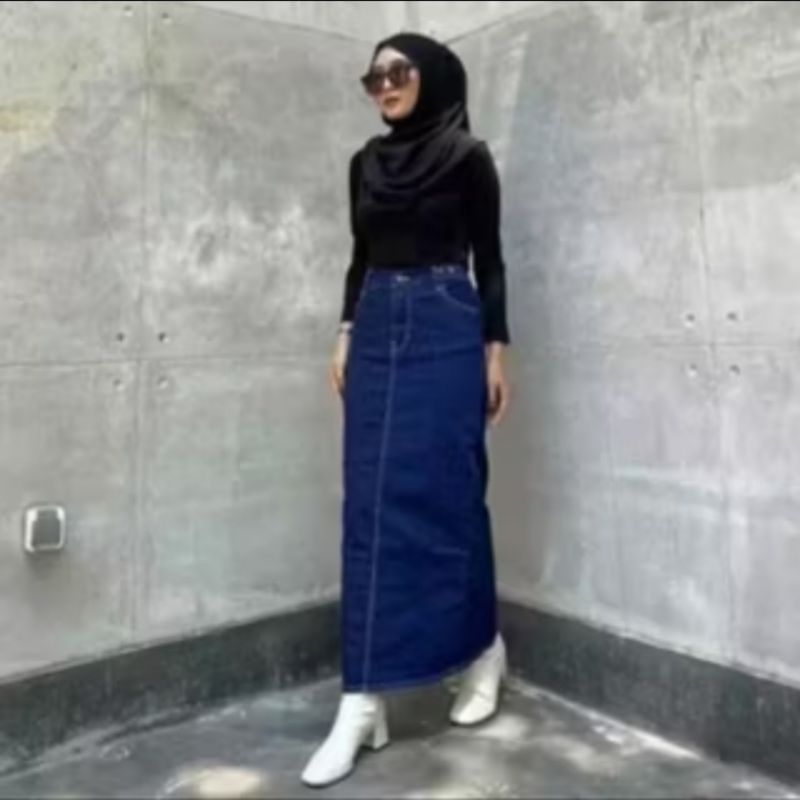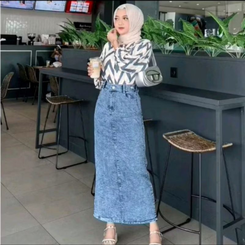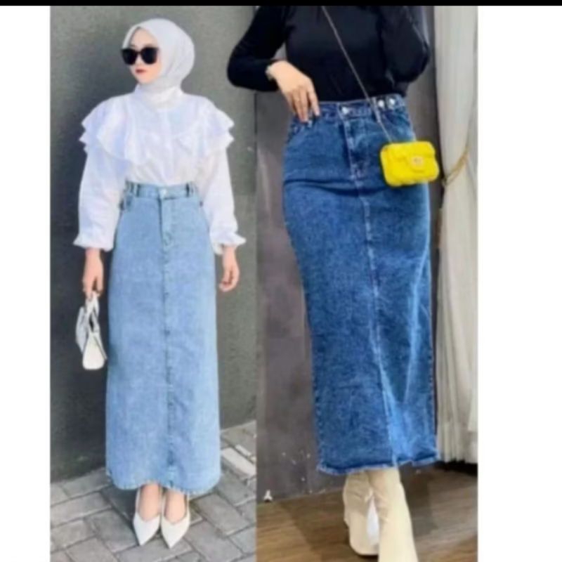 THEANA ROK JEANS BELAH ZENDA PRABO SKIRT JEANS WANITA ROK CEWEK PANJANG KOREAN STYLE
