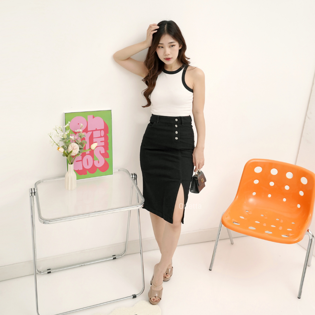 Onetta - Rok Jeans Wanita Jumbo Span Stretch Pendek MELISSA Skirt Black