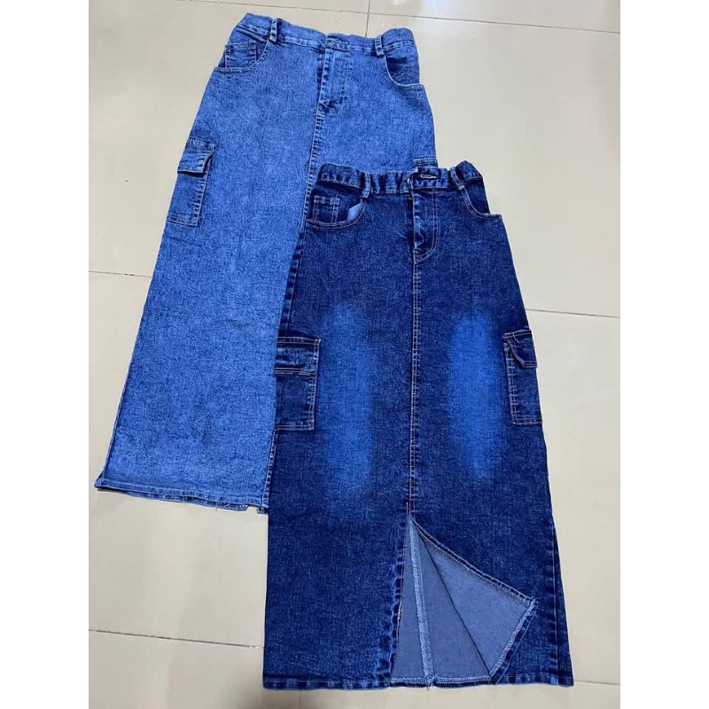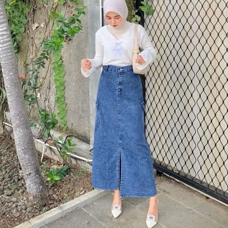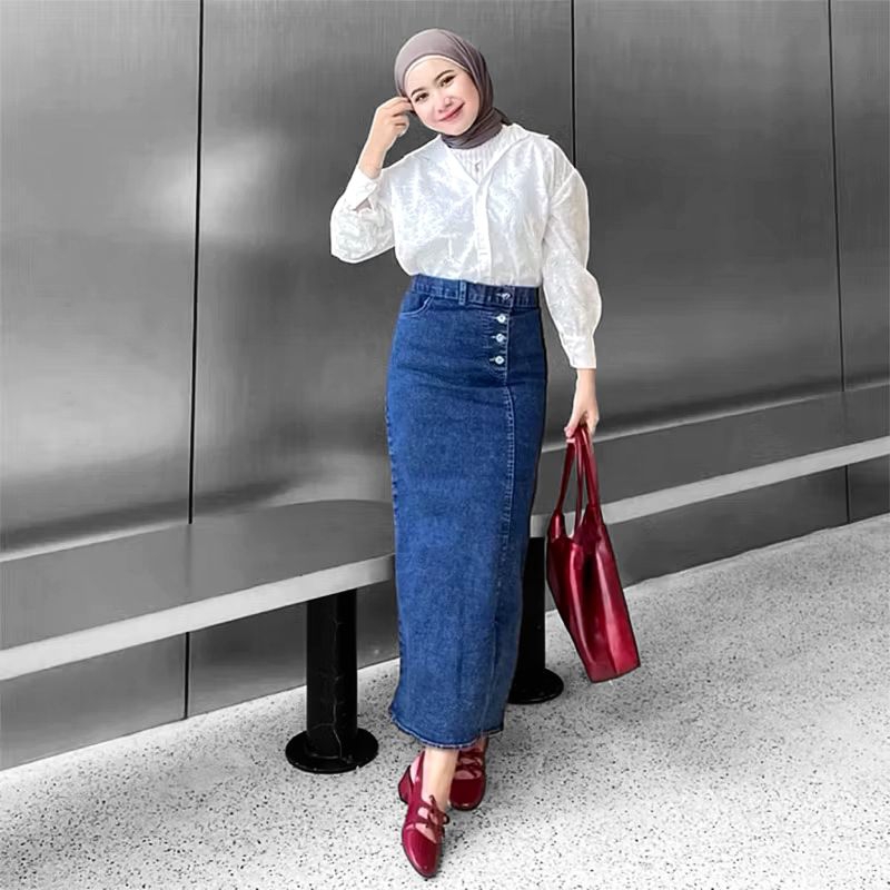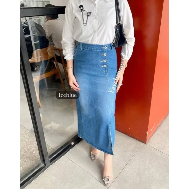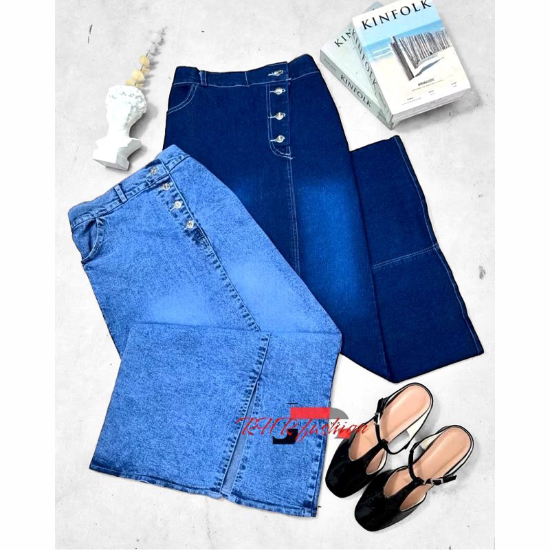 Rebecca Rok Jeans Kancing Belah Samping | Rok Jeans Panjang Terbaru Korea Style