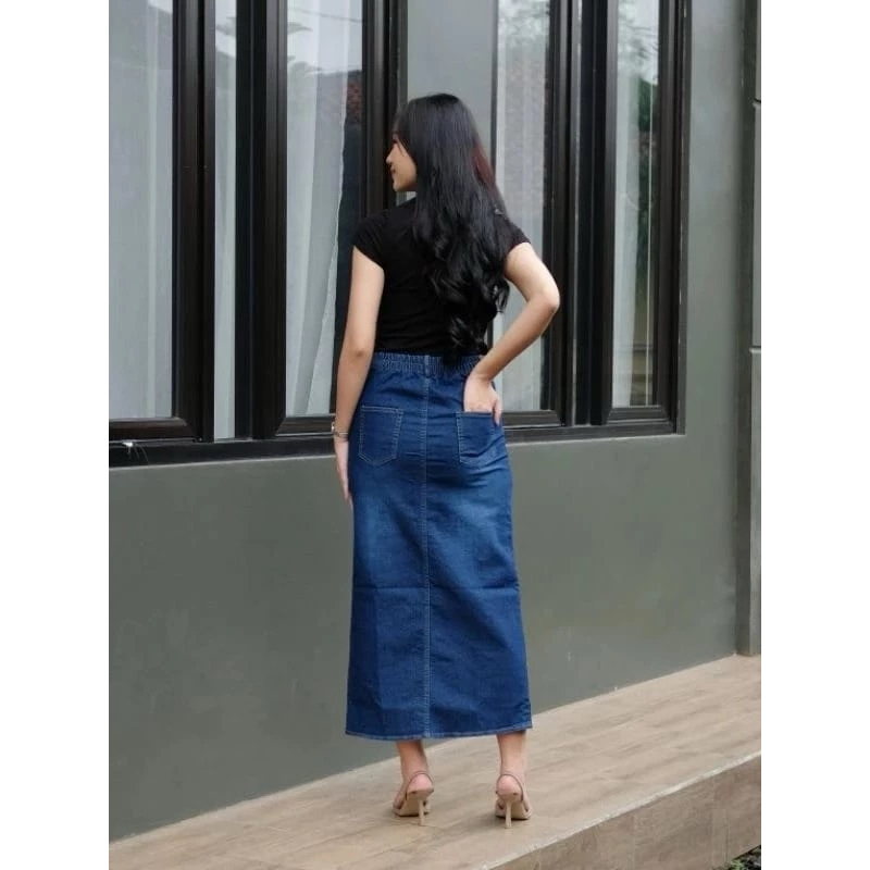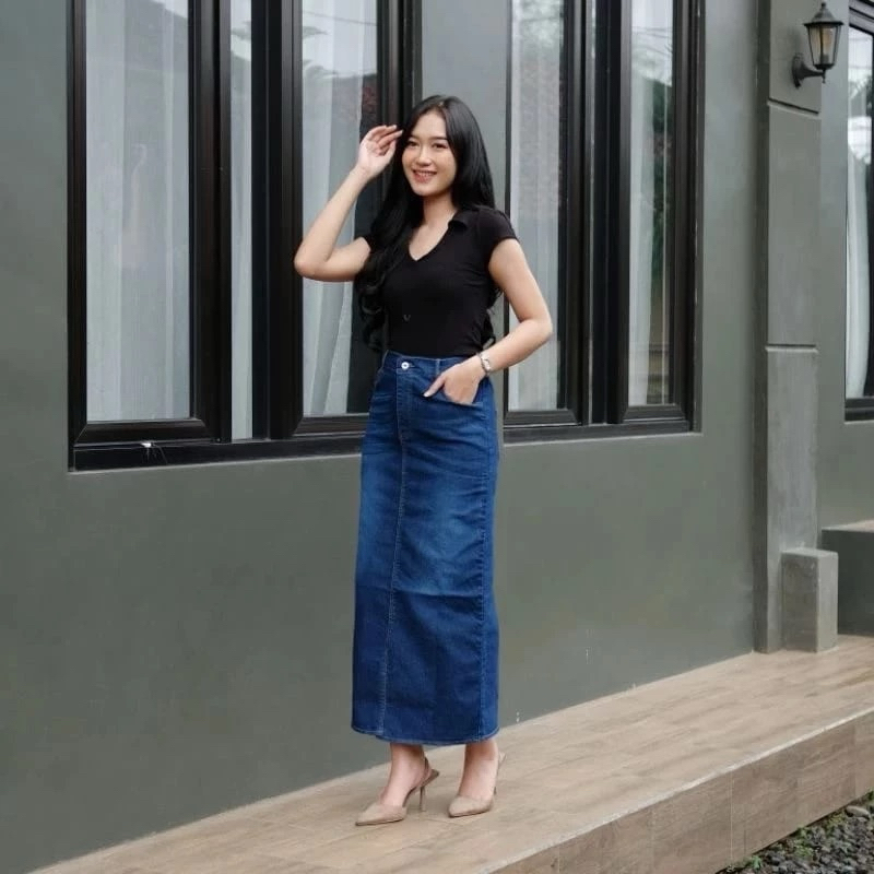Adeeva Rok Jeans Span Wanita Denim Panjang Terbaru