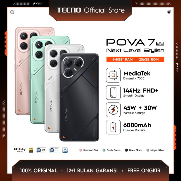 [Mall]TECNO POVA 7 5G 8+8GB/256GB 6000mAh Mediatek D7300 Ultimate 144Hz Smooth Display 50MP Primary Camera Android 15