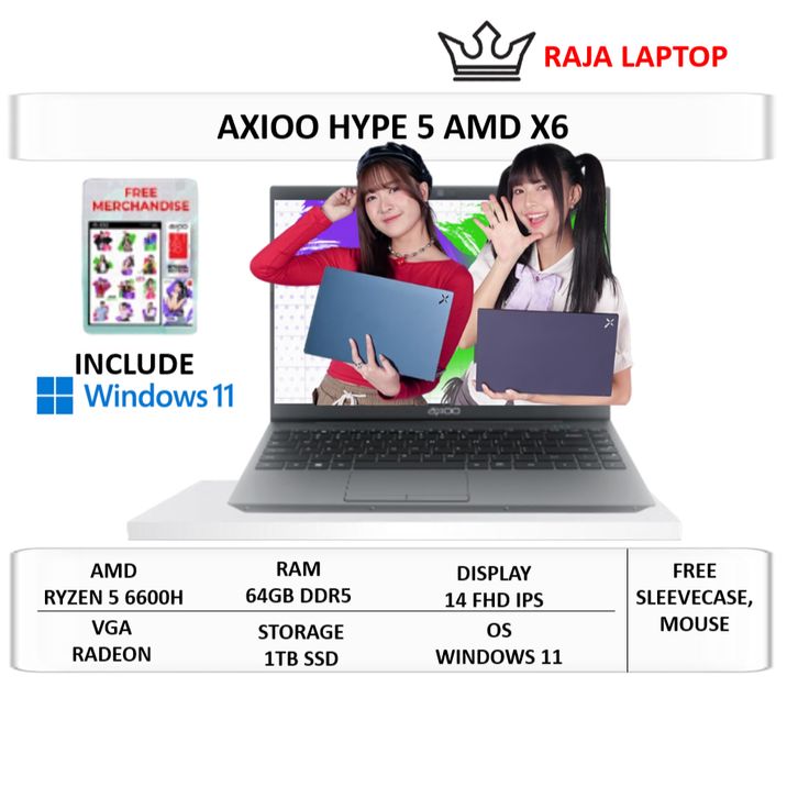 Laptop Gaming Axioo Hype 5 AMD X6 Ryzen 5 6600H Ram 64GB DDR5 SSD 512GB 14" FHD Windows 11