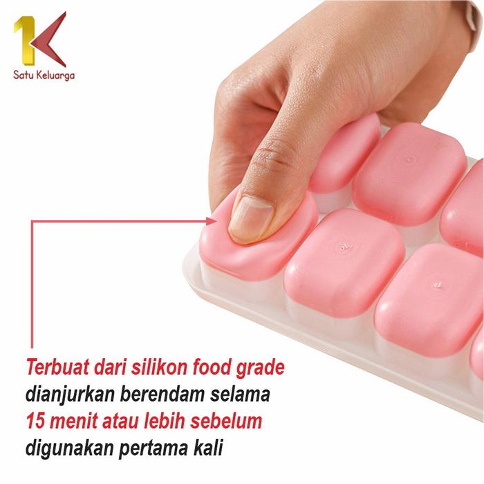 [c06] SK C532 Cetakan Es Batu Dengan Tutup Bentuk Kotak Bahan Silikon Serbaguna 14 Kotak Kitchenware - HIJAU