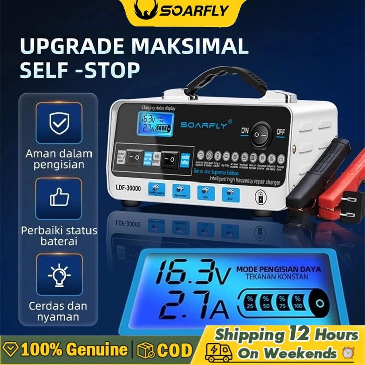 Pengisi daya aki mobil SOARFLY 800A tugas berat pengisian cepat pengisian cepat otomatis penuh sepeda motor kapal truk
