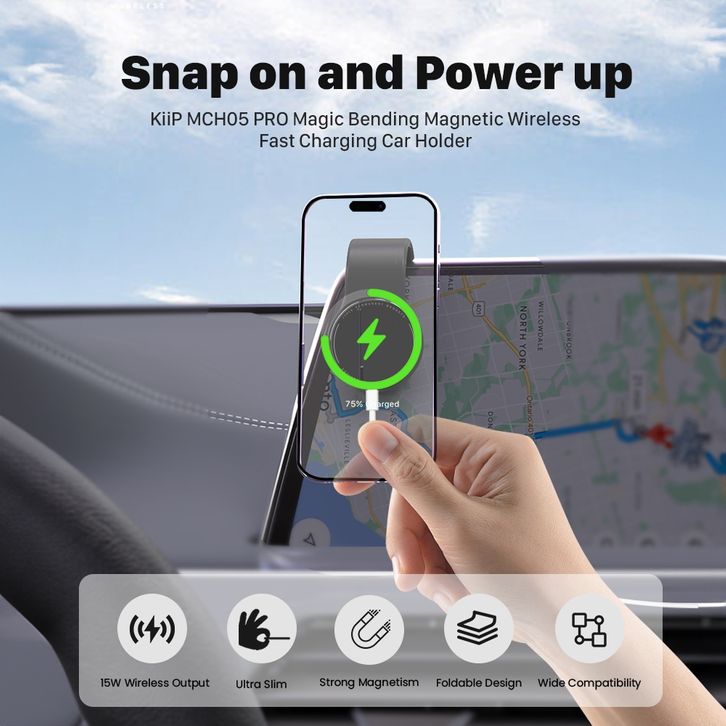 KiiP Wireless MCH05 Pro 2in1 Wireless Charging Car Phone Holder Dashboard Magsafe Foldable Aksesoris