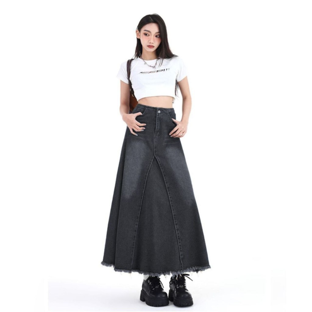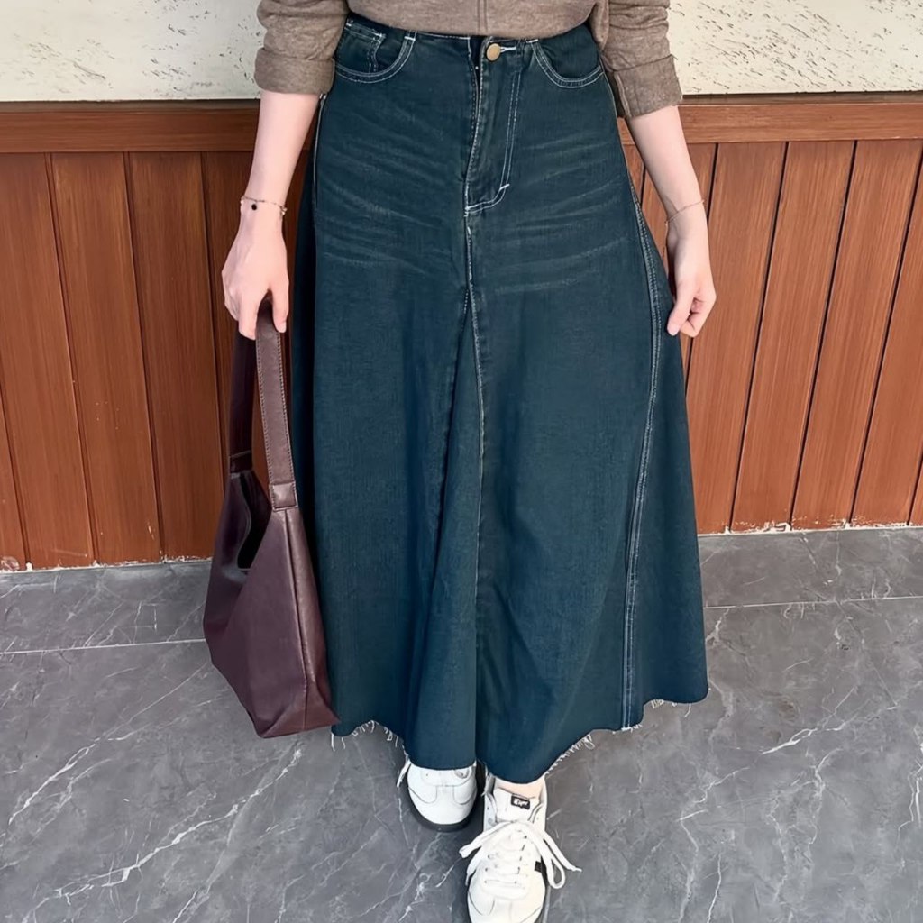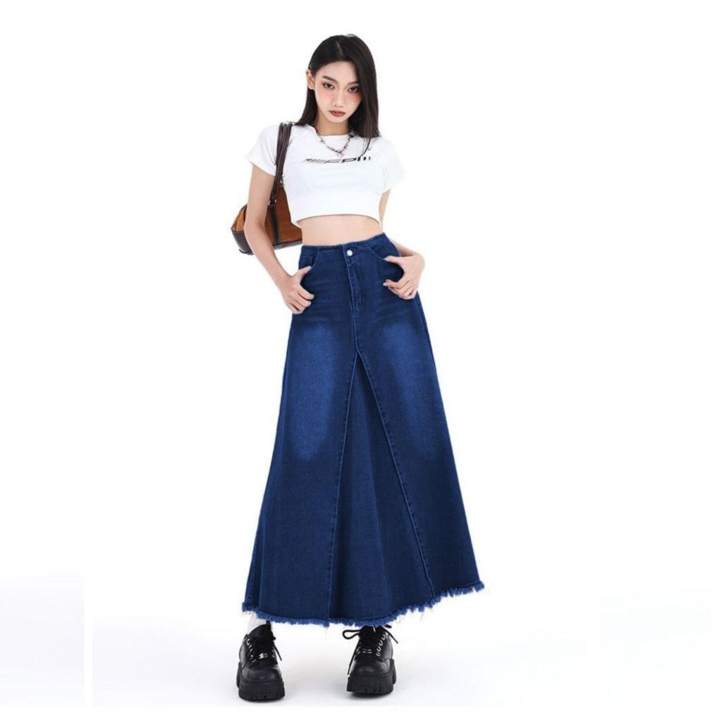 Rok Vintage Jeans Maxi Highwaist Wanita Muat Bb 100kg Terbaru Aksal Jeans