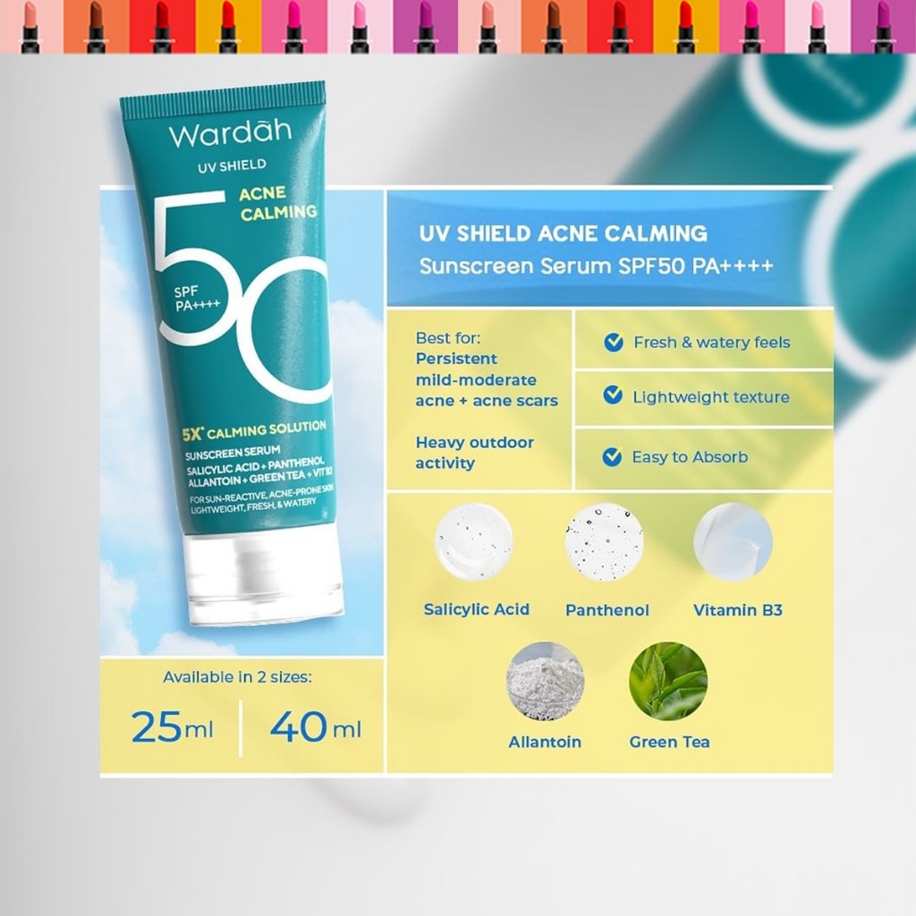 Wardah UV Shield ne Calming Sunscreen Moisturizer SPF 35 35 ml / SPF 50 25 ml PA+++ Sun Screen wardah skincare wardah