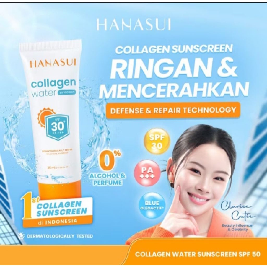 HANASUI COLLAGEN WATER SUNSCREEN Brightening SPF 30 PA+++ (PUTIH) sunscreen hanasui sunscreen