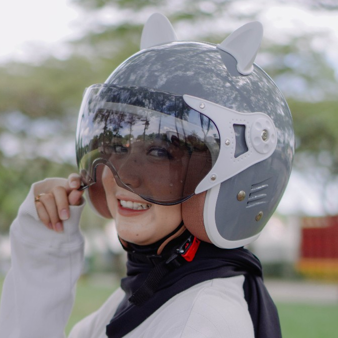 Helm Retro Bipplast Fantasy BRH 1 Hijab Friendly Half Face Helem Wanita Cepol SNI