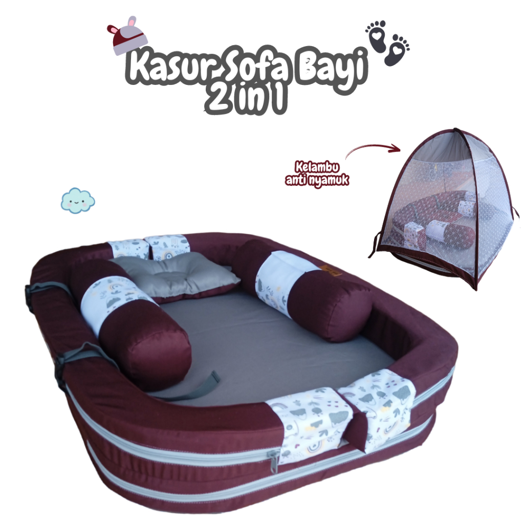 Kasur Sofa Bayi Multifungsi 2 in free Bantal Guling Kelambu anti Nyamuk