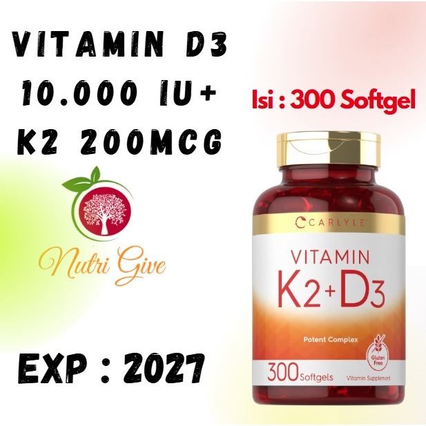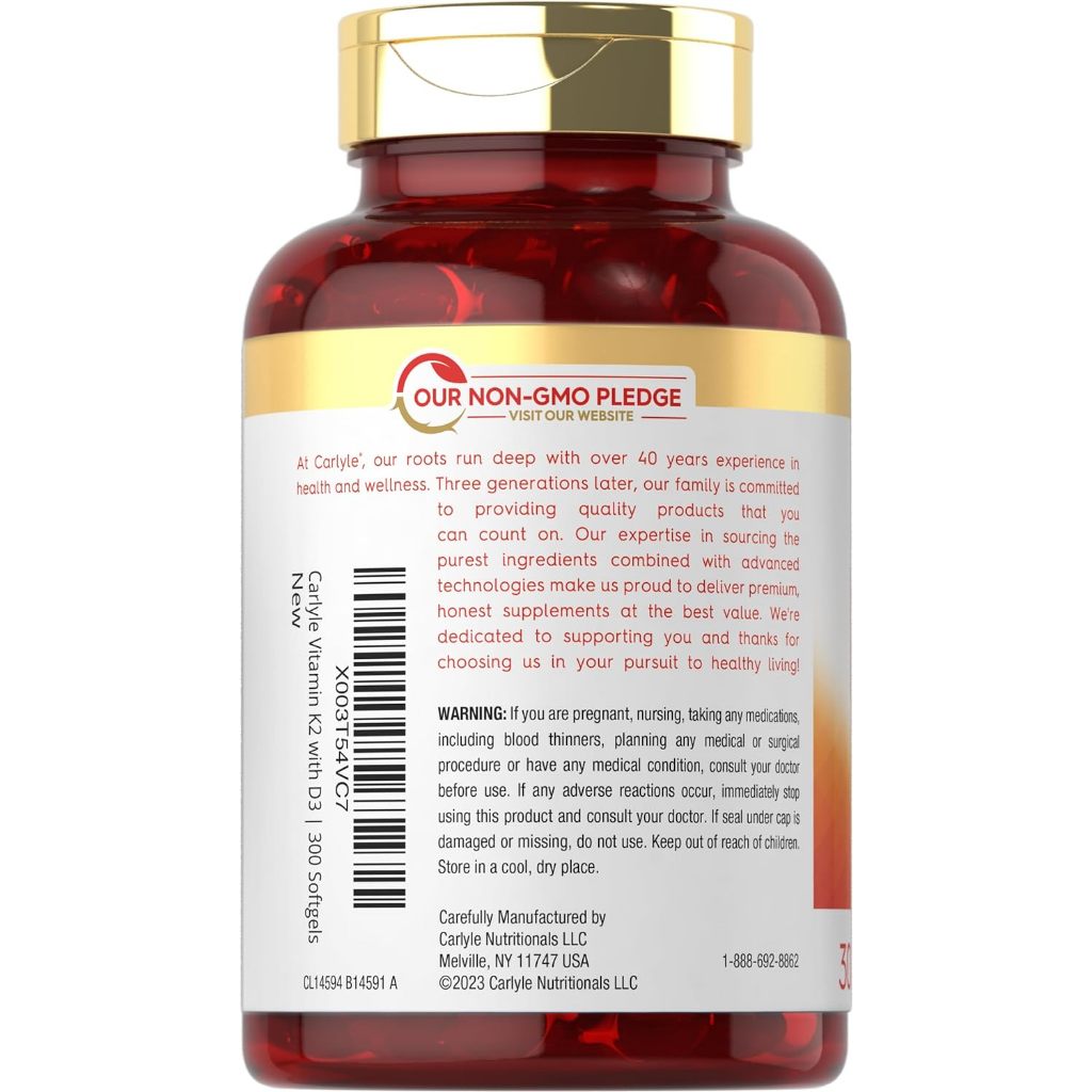 Carlyle Vitamin D3 10000IU + Vitamin K2 200mcg 300 Softgels D3 K2