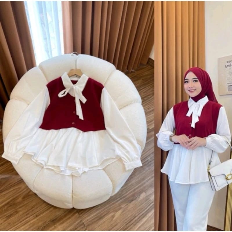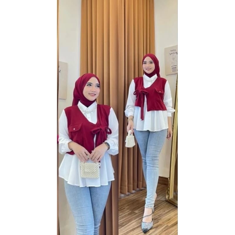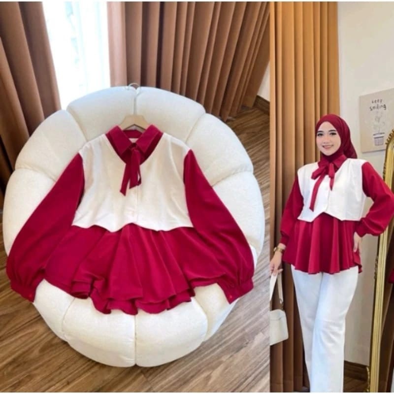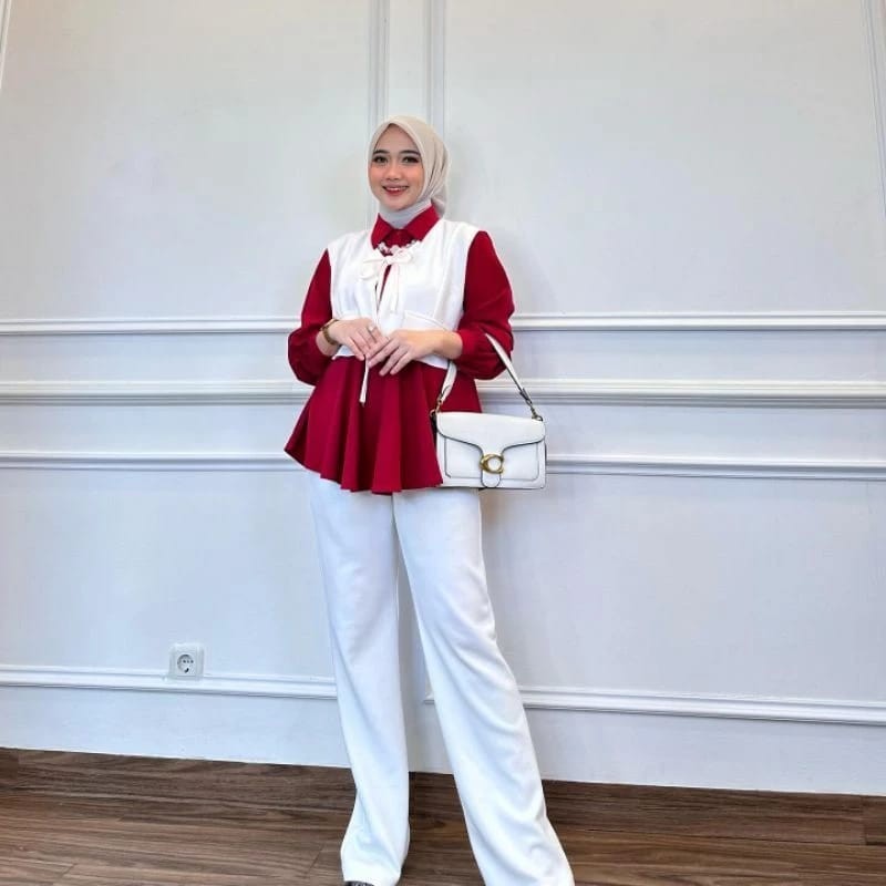 Atasan Kemeja Blouse Kombinasi Merah Putih Baju Kemerdekaan Spesial Agustusan 2025 Terbaru By Dizzah Gamisku