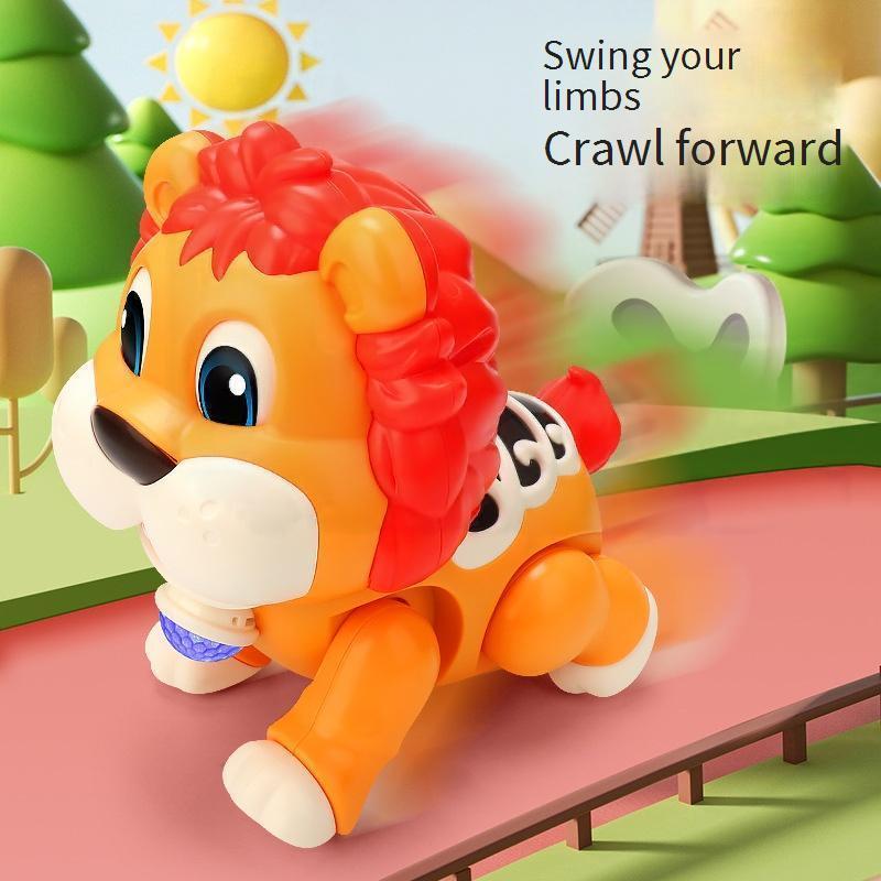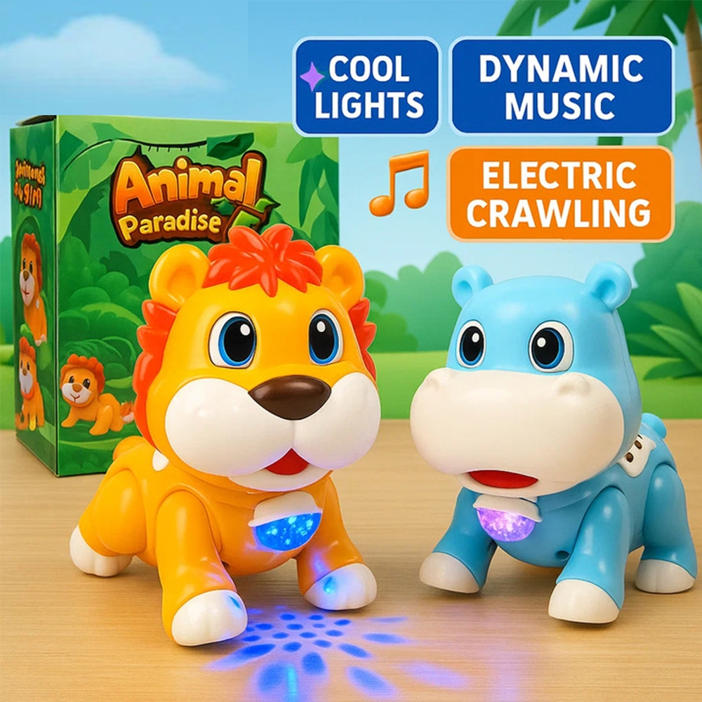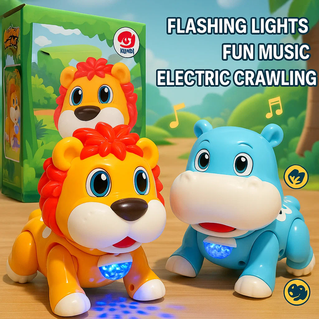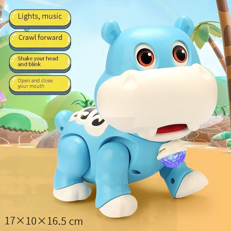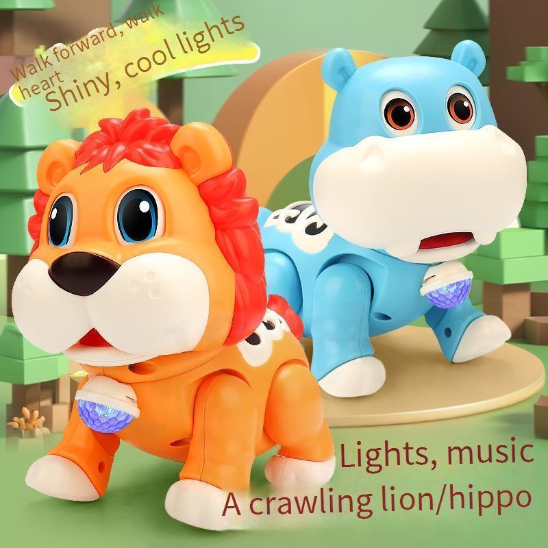 MOONTOY Mainan Anak Hippo Lion Berlampu Musik Merangkak Menari Permainan Musik Sensorik Mata Bisa Bergerak Hadiah Ulang