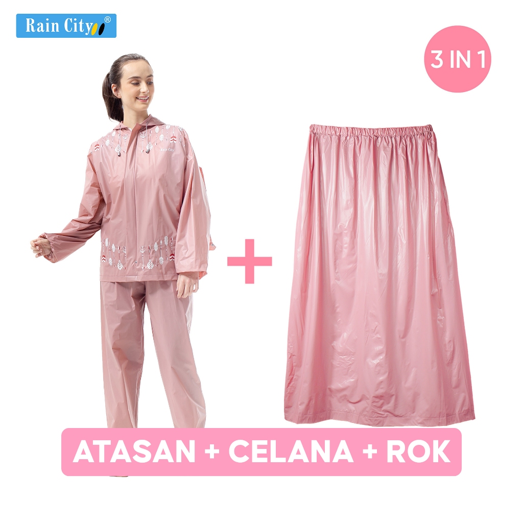 Paket 3 in 1 Jas Hujan Setelan + Rok - Rain City