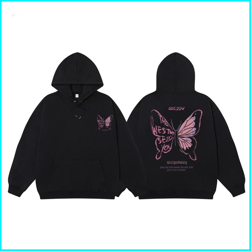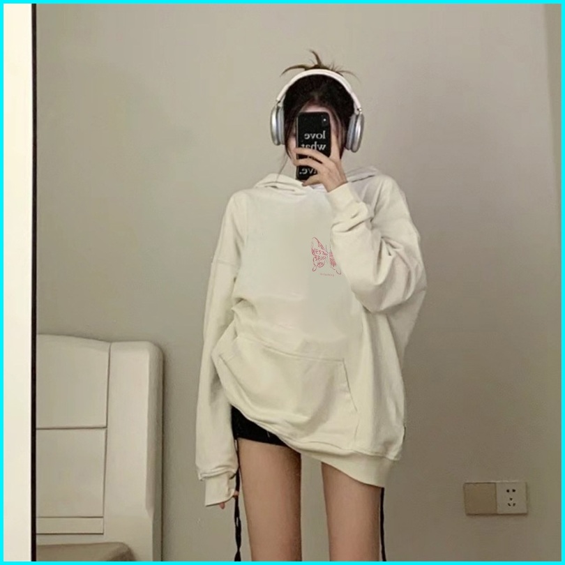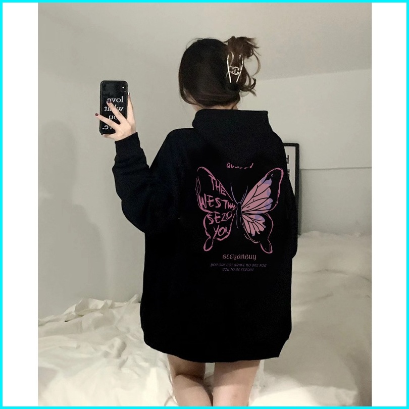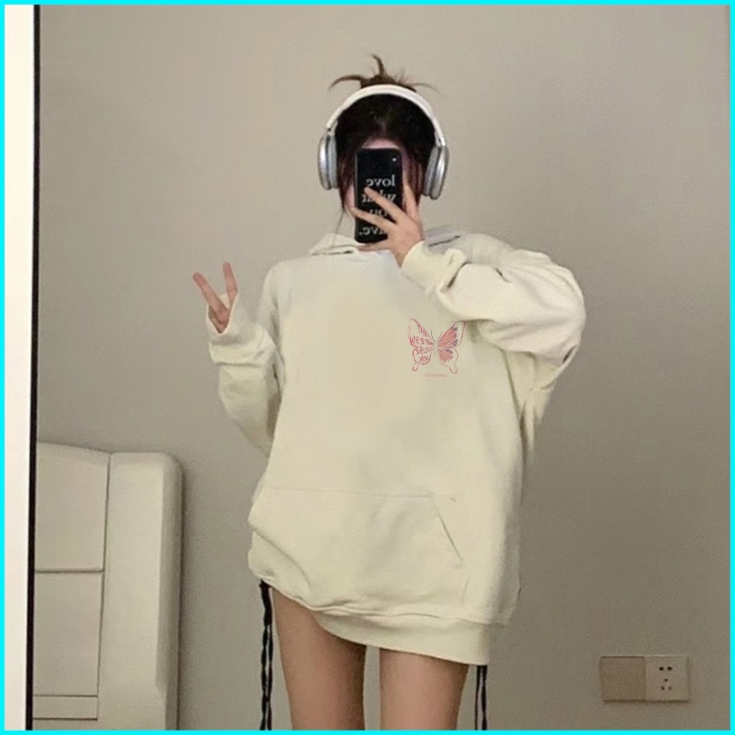 Sweatshirt Wanita Korean Style Lengan Panjang Hoodie Kupu Kupu Butterfly Import Kekinian Oversize Street Style Hoodie Pu