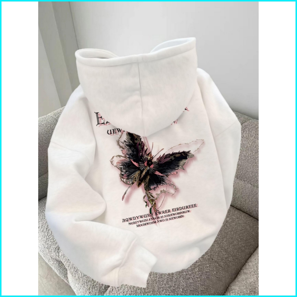 Forteid Oversize Hoodie Wanita Korean Style Oversize Hoodie Sweater Cetakan Huruf Kupu-kupu Baju Wanita Kekinian Baju