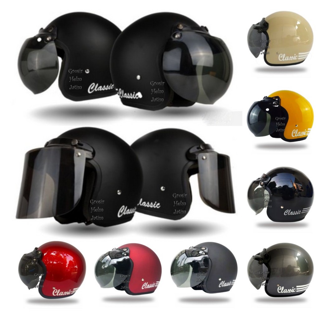 Tiger Helmet Helm Bogo Retro Dewasa SNI List Classic Polos Free Aksesoris Kaca Cembung