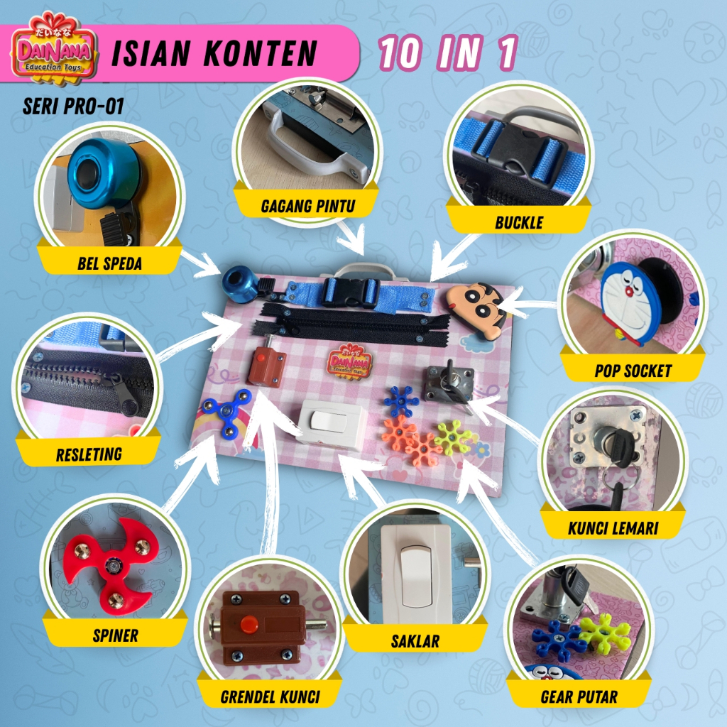 Busy Board Mainan Edukasi Montensory ukuran 20x30 Melatih motorik dan sensorik pada anak Seri Pro-01