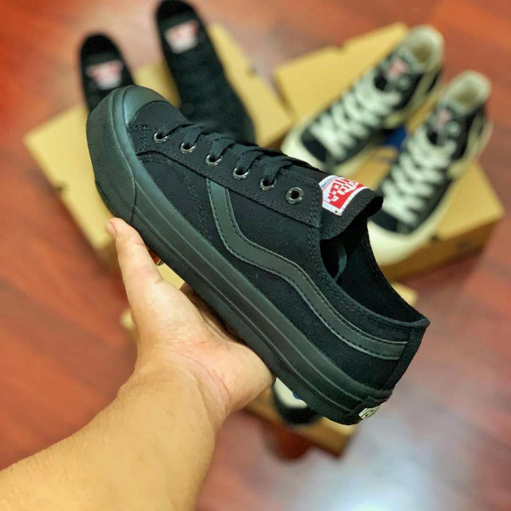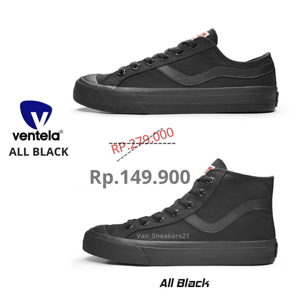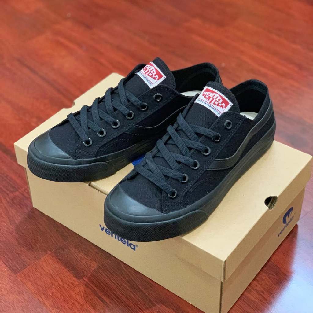 Sepatu Vantela Public All Black Low | Sepatu Sekolah Full Black Sneakers Pria Wanita Hitam Polos 2026