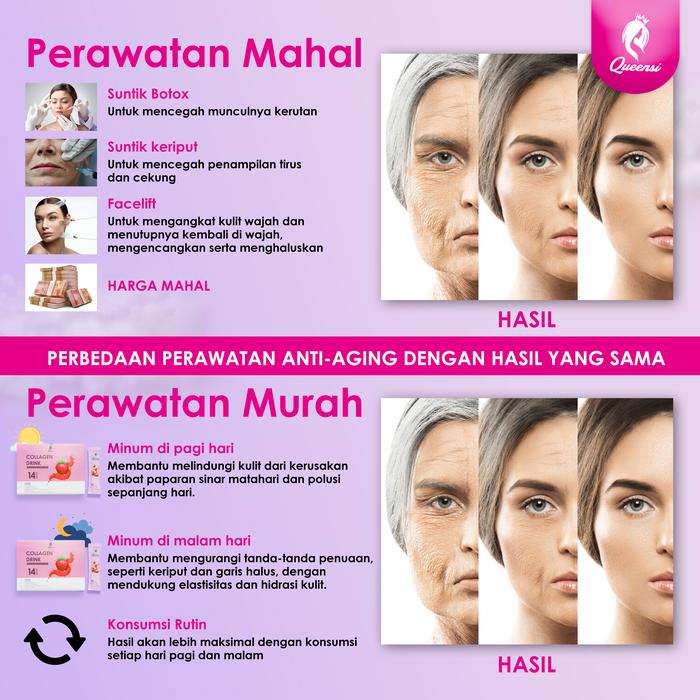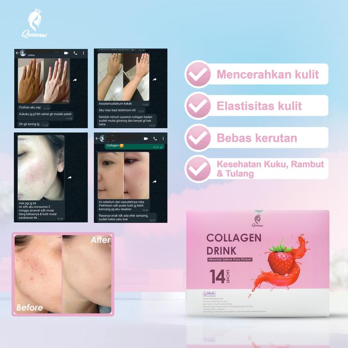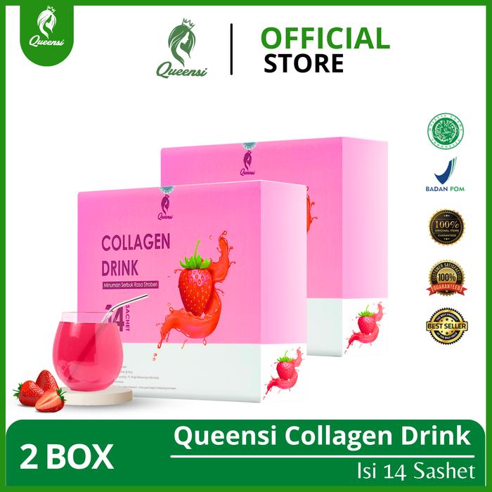 [ 2 Box ] Queensi Collagen Drink With Collagen Bovine Peptiplus Vitamin C & L-Glutatione Minuman