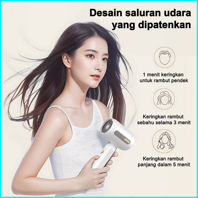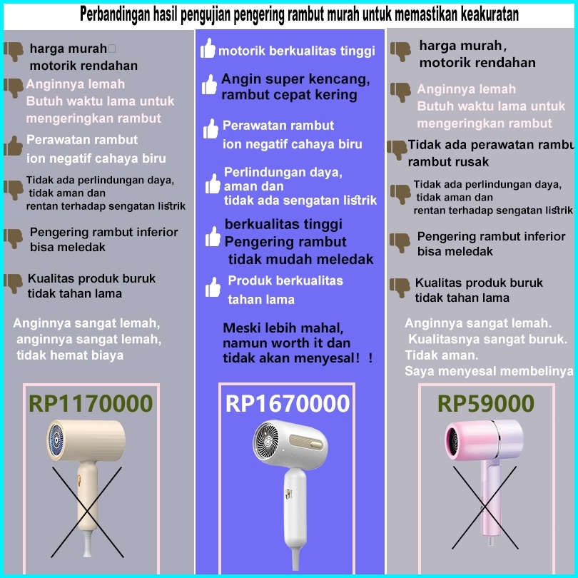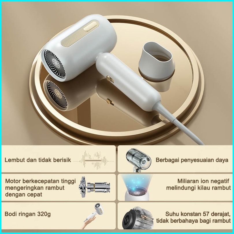 Kucuu Hair Dryer Blue Light Negative Ion Portable Low Watt 650w Pengering Rambut Hair Protection Quick Drying Bergaransi