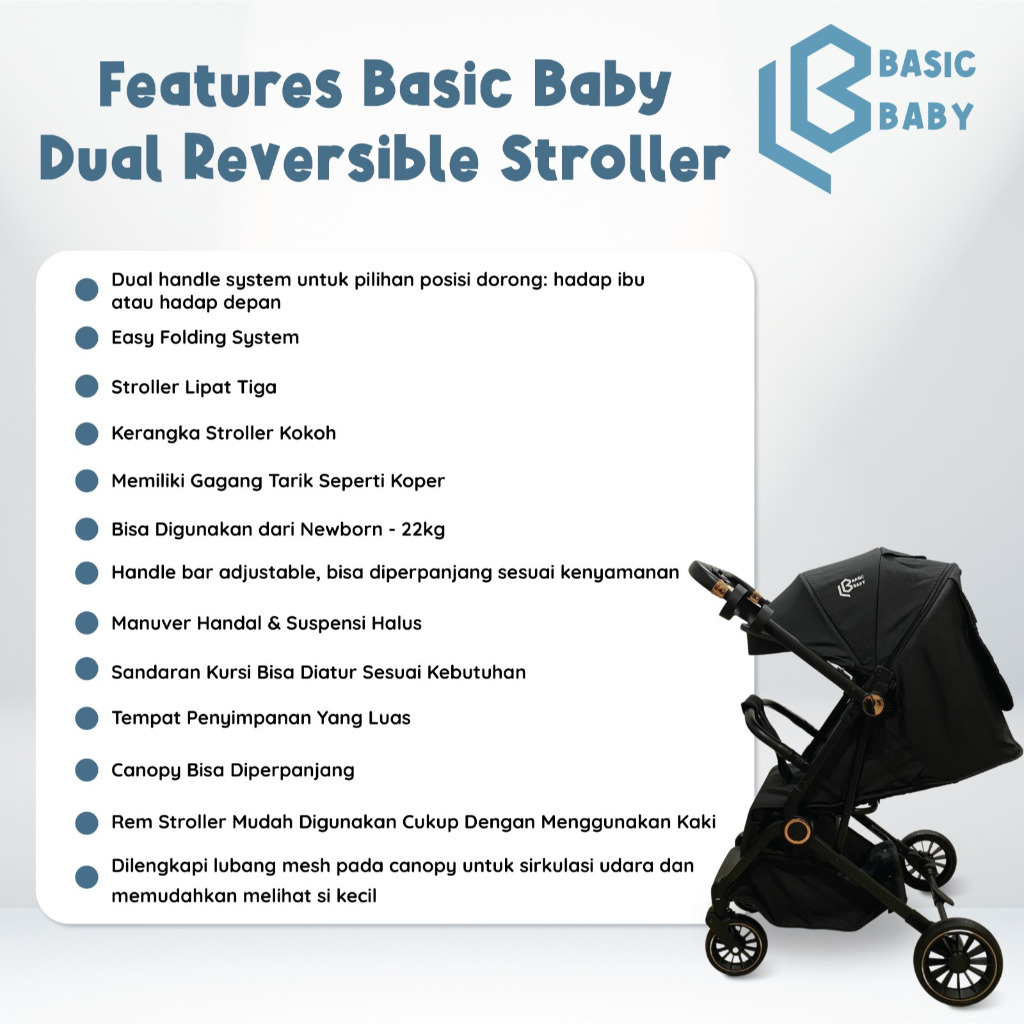 Basic Baby Dual Reversible Stroller - Stroller Compact Travelling / kereta dorong / Stroller 2 arah