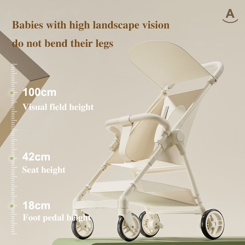 BEIGE Stroller Bayi 1-Tombol Lipat Portabel Travel Kapasitas 60kg Ringkas